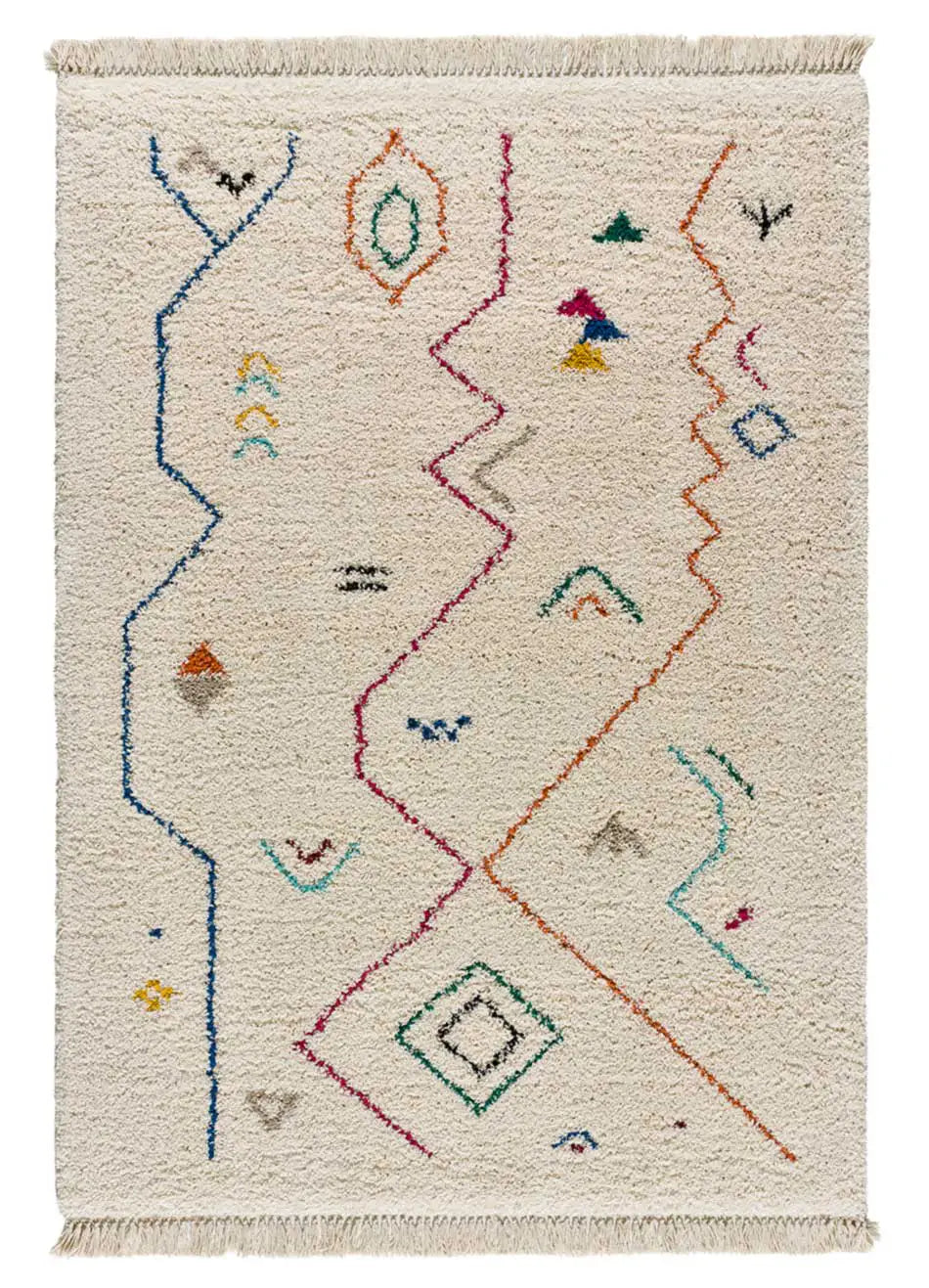 Alfombra shaggy geométrica con flecos Samira 80075 Blanco Atticgo