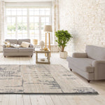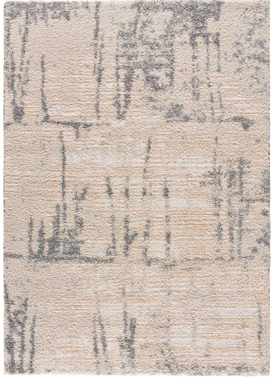 The Enya rug is a rug with a play of textures due to the mix of materials and because it is woven at different heights, forming designs in relief. This high pile shaggy rug is perfect as a living room and bedroom rug. A modern and trendy rug in beige, white and grey tones.