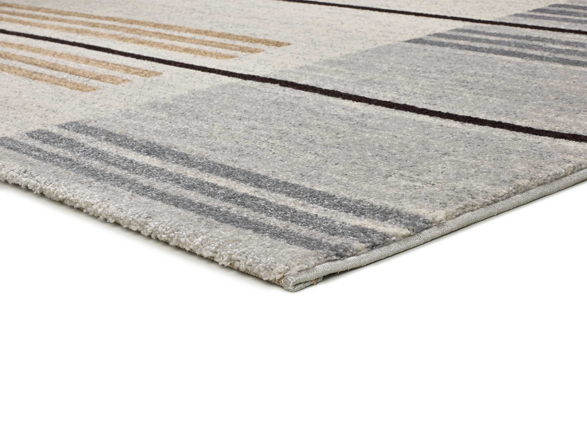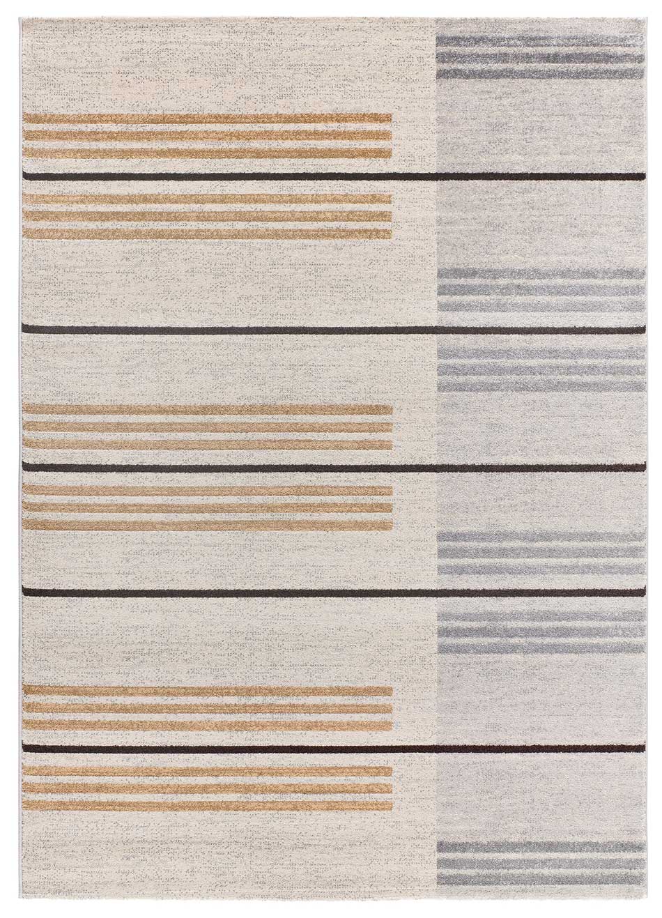 The CRAFT rug collection is inspired by handcrafted rugs, a combination of earthy colors that draw textures with geometric designs. A modern rug with stripes in gray and beige tones, versatile, resistant, and perfect as a living room rug. Bring your home to life with a new rug!