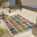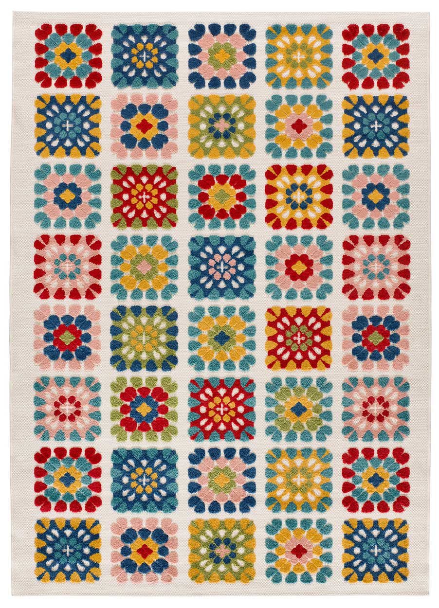 Atticgo Alfombra efecto crochet con relieve de exterior-interior Mila 23528 Multicolor ambiente
