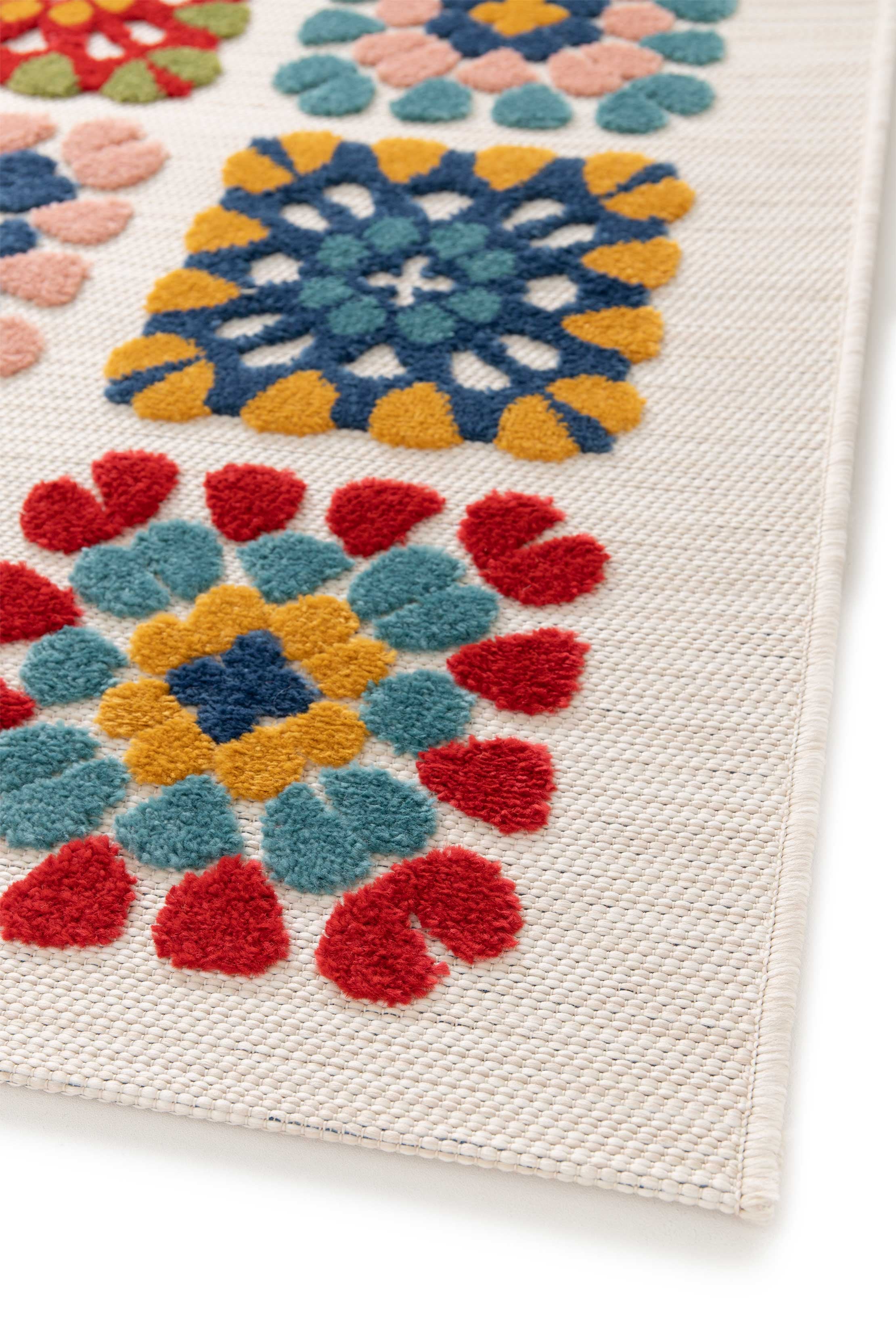 Atticgo Alfombra efecto crochet con relieve de exterior-interior Mila 23528 Multicolor alfombra ambiente de salón