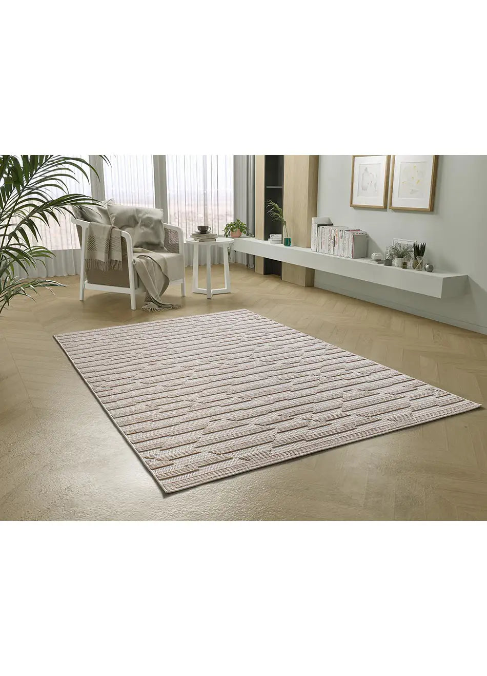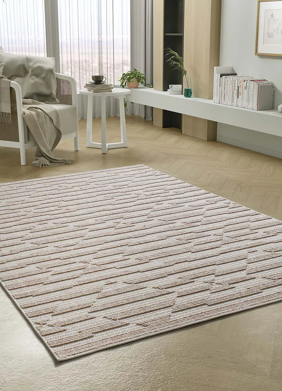 Atticgo Alfombra estilo escandinavo, reciclada y con relieve Lima 3502 Beige ambietne