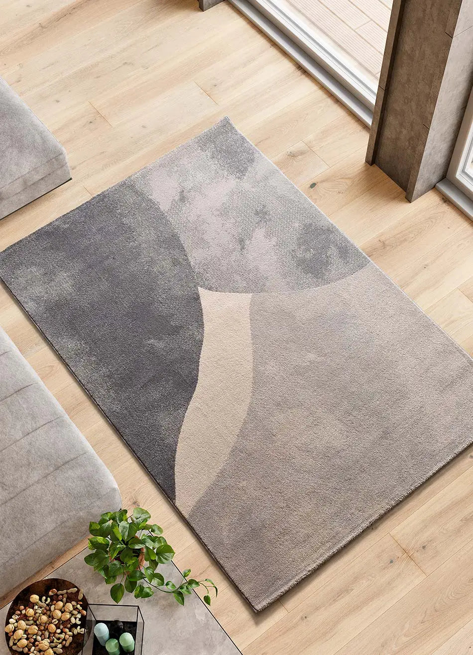 The MONIC rug is a geometric rug inspired by organic shapes. A short pile rug in cream and grey tones. Its design makes it a modern and contemporary rug, perfect as a living room or bedroom rug.