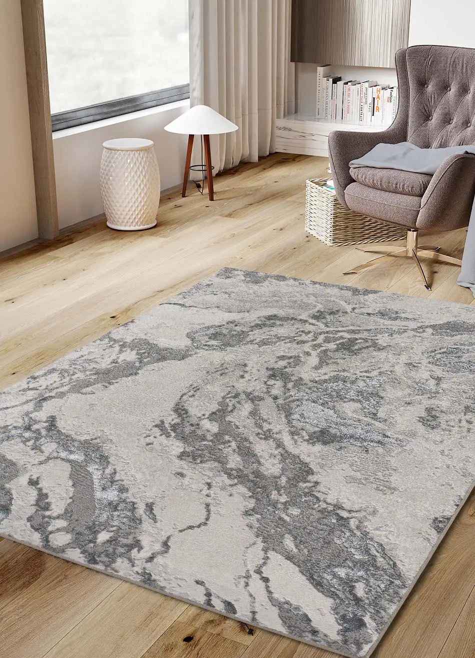 Alfombra abstracta Agata 8441 Gris abiente de salón