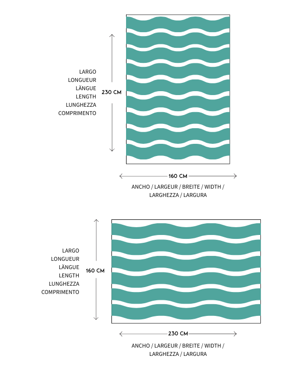 Las medidas de la alfombra de las imágenes corresponden a 160 cm de ancho y 230 cm de largo. El dibujo de la alfombra se rige por el ancho. Si tienes dudas sobre la orientación de la alfombra puede escribirnos a través de info@atticgo.com