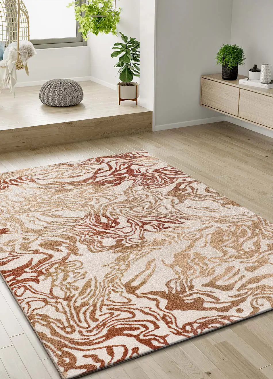 Découvrez le tapis abstrait Astra 13004 en couleur rouille, doté d'un design artistique et d'une combinaison chromatique enveloppante. Ce tapis devient le point focal de la pièce. Parfait comme tapis de salon ou de chambre pour habiller le sol avec personnalité et ajouter une sensation de confort visuel et tactile.