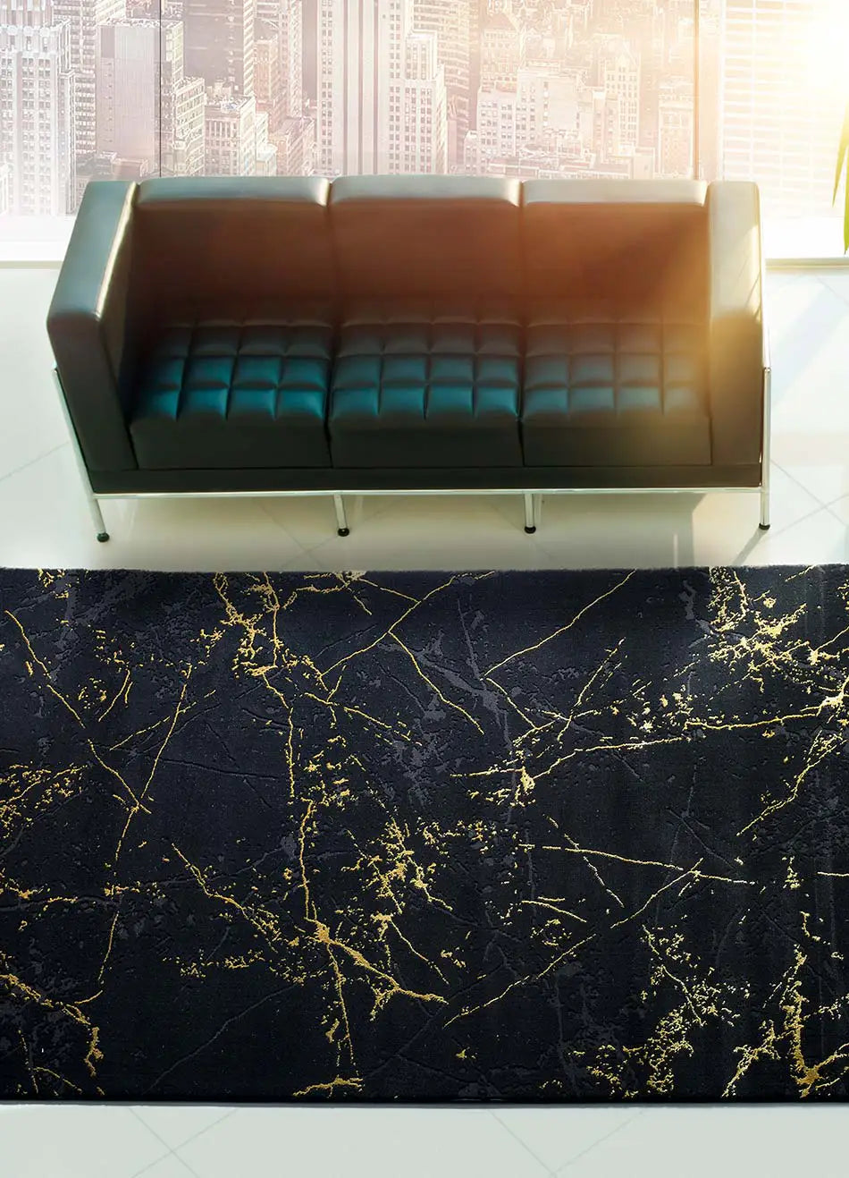 Atticgo Alfombra abstracta Gold 23438 negro ambiente