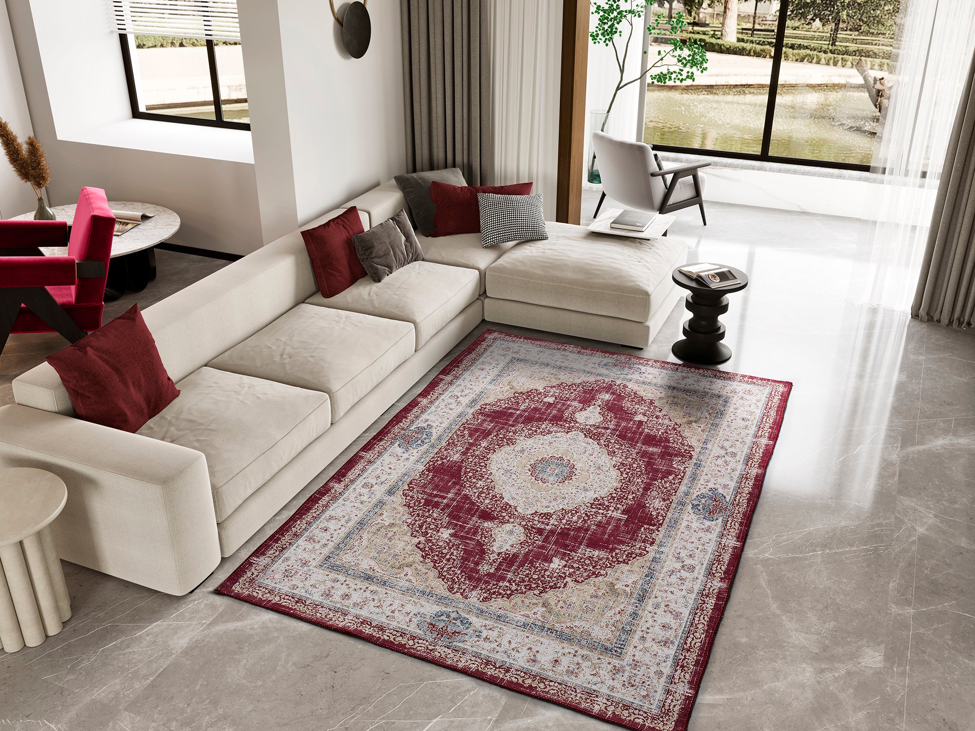 - Tapis de style vintage dans les tons rouges, parfait pour le salon ou la chambre. C'est aussi un tapis pliant : vous pouvez le plier, le ranger ou le transporter facilement.