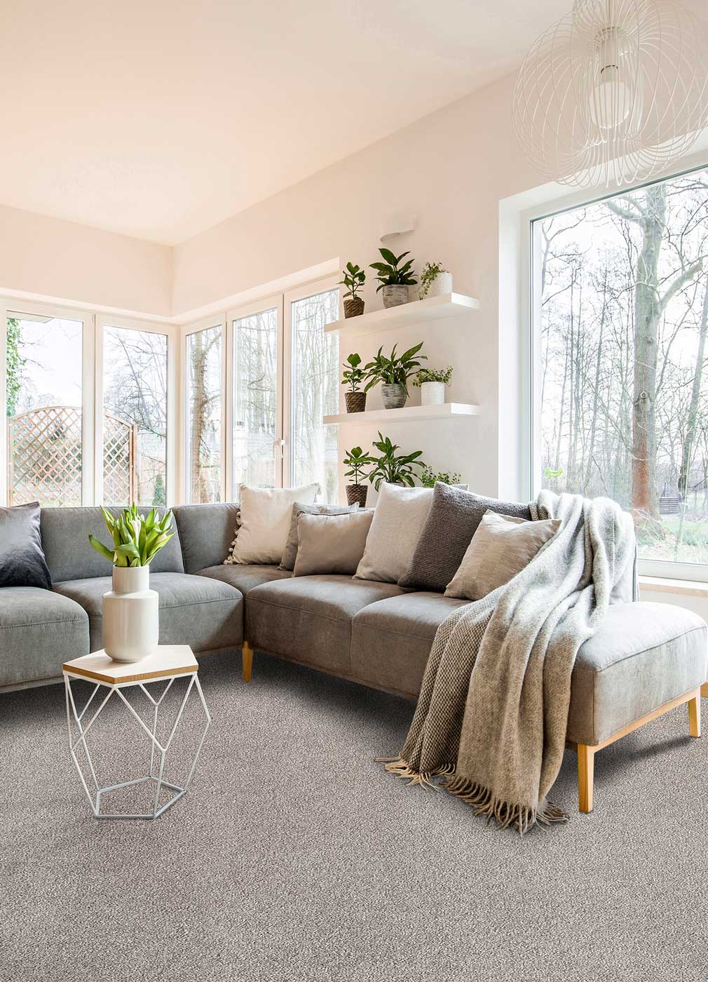 Alfombra a medida Shiva Liso Plata en el salón | Atticgo