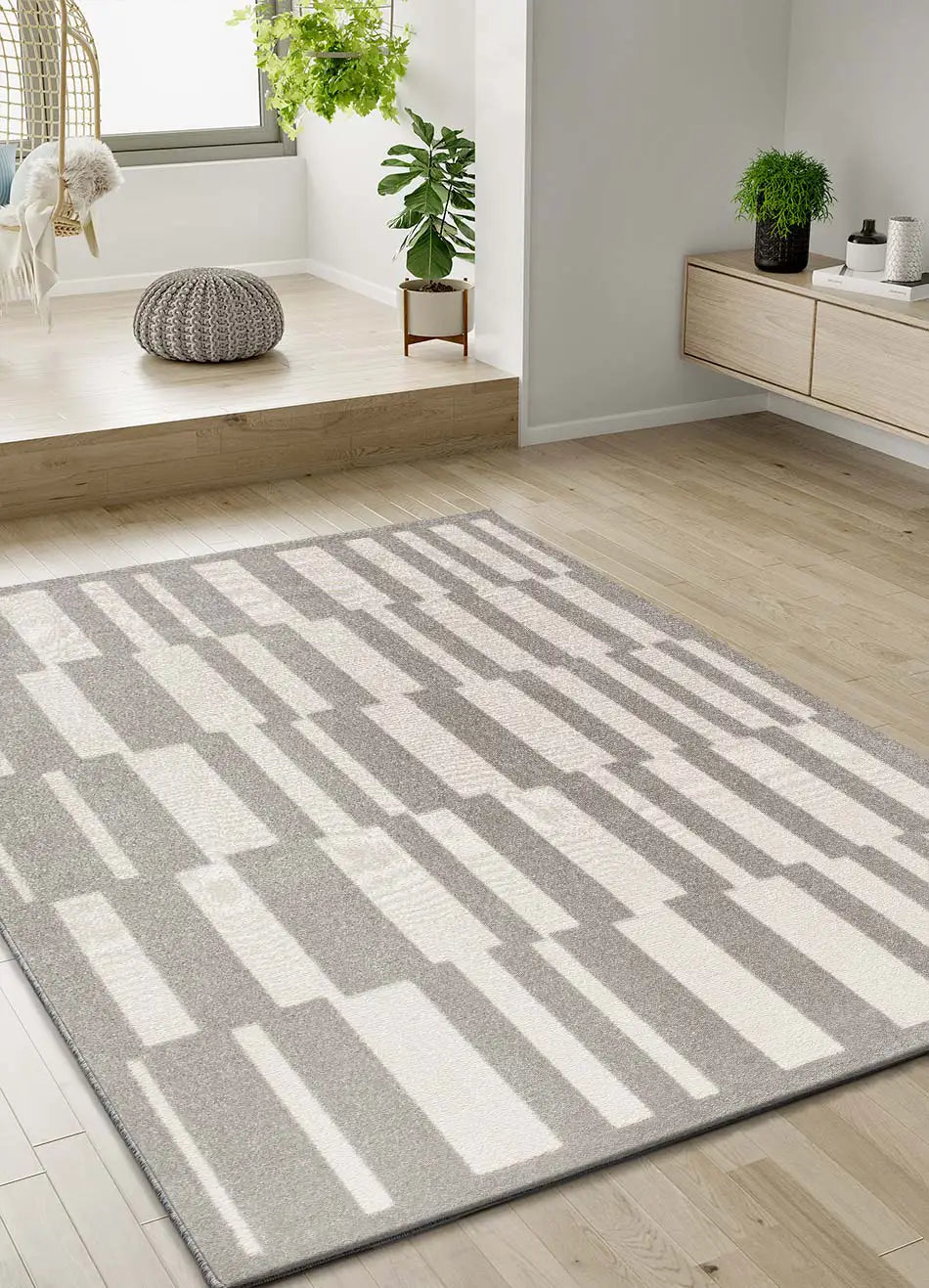 Scopri l’ultima tendenza con BARESA, un tappeto nei toni grigio e bianco con design geometrico che illuminerà ogni angolo della tua casa. Un tappeto con rilievo, a pelo corto e dal tocco morbido che aggiungerà comfort alla tua quotidianità.