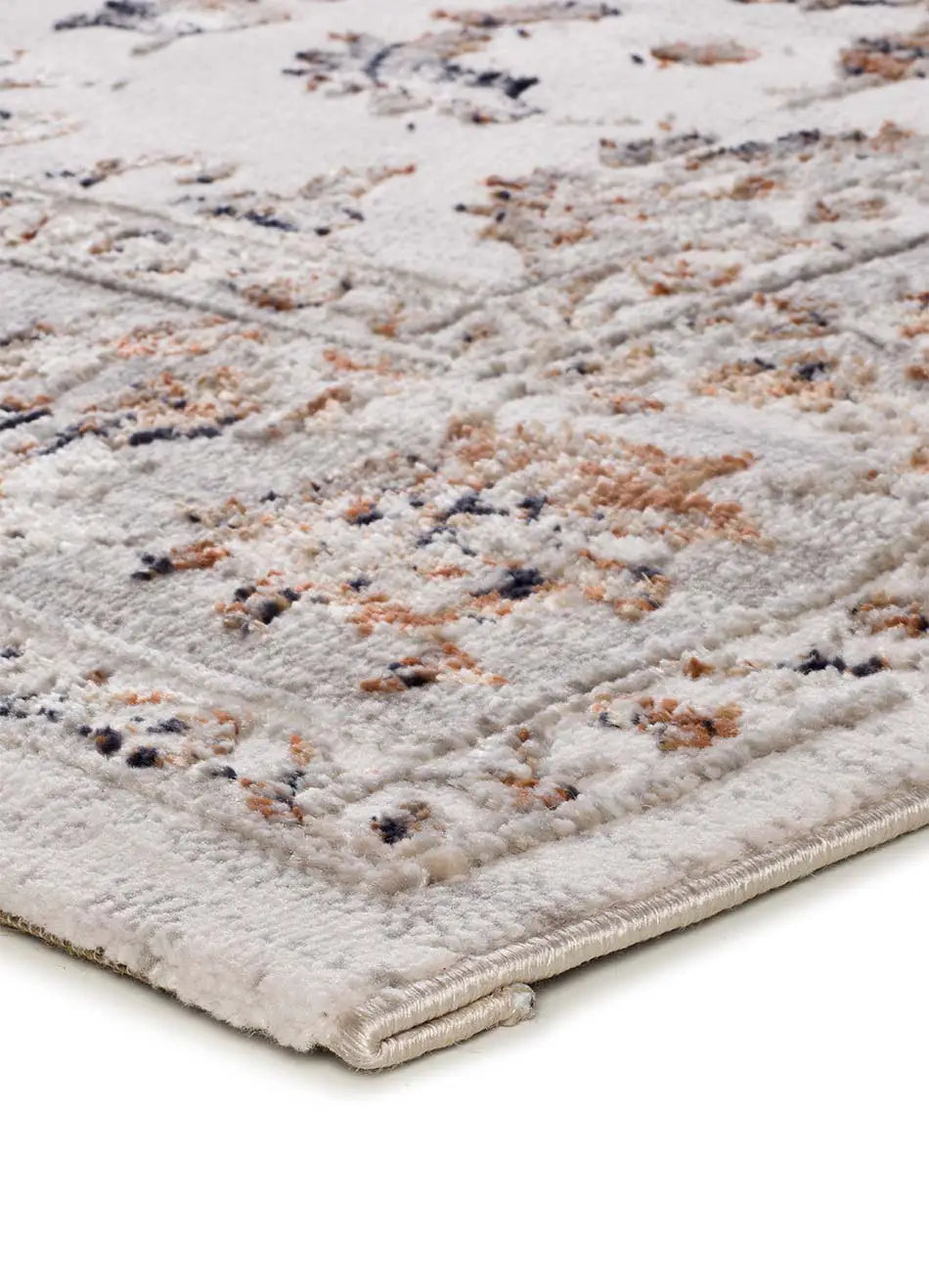 Scopri il tappeto vintage Keops dal design ornamentale con effetto consumato. Le sue tonalità beige, ruggine e blu creano un effetto accogliente ed elegante in questo tappeto per soggiorno o camera da letto. Grazie alla sua finitura con effetto lucido, il tappeto offre diverse sfumature durante il giorno.