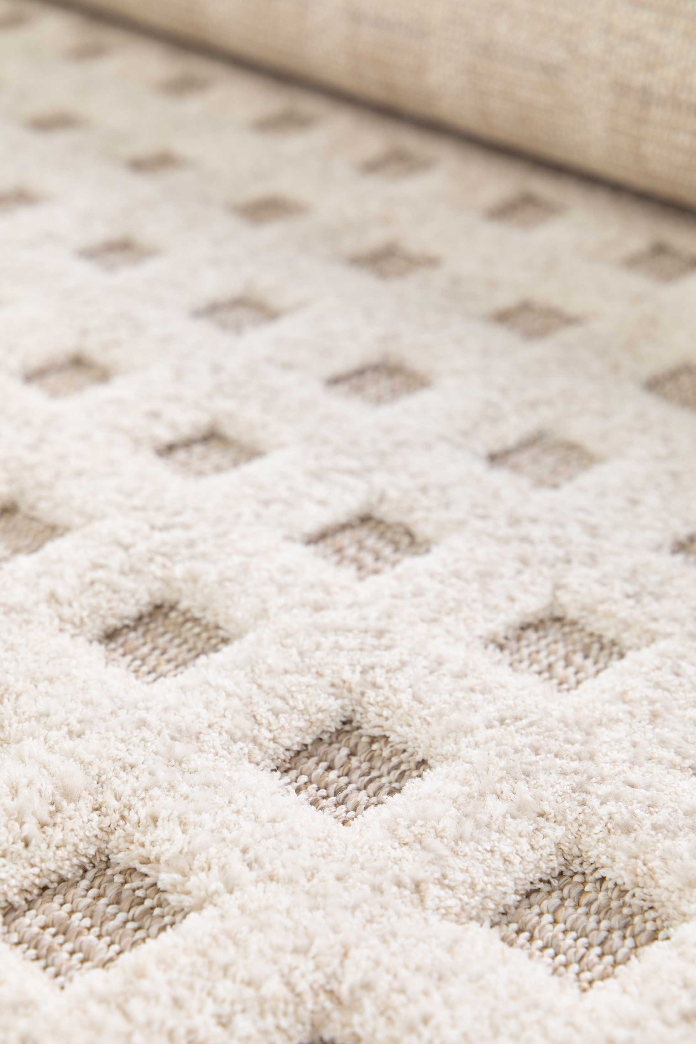 La collezione di tappeti DIENA si caratterizza per l'originalità e il rilievo, aggiungendo un tocco unico alla vostra casa. Con i suoi motivi geometrici ed etnici in colori crema che contrastano con la trama, questo tappeto è l'aggiunta perfetta a qualsiasi stanza. Godetevi il comfort e lo stile di Diena.