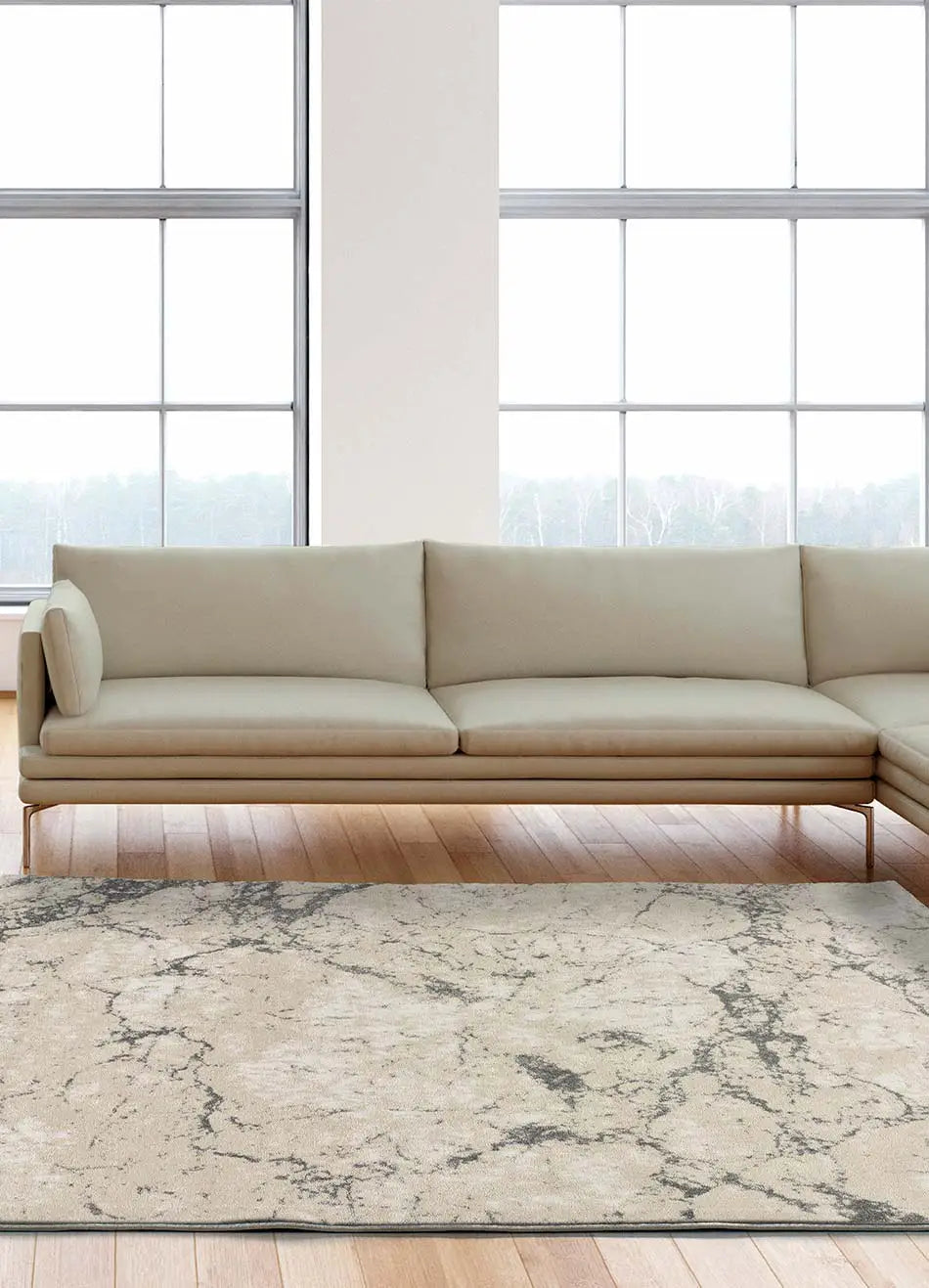 Il tappeto effetto marmo Sensation è progettato per creare uno spazio tranquillo e luminoso. Si tratta di un tappeto a pelo corto in grigio e crema con un gioco di texture e rilievi che lo rendono unico. Il suo design lo rende un tappeto moderno ed elegante, perfetto come tappeto da soggiorno o camera da letto.