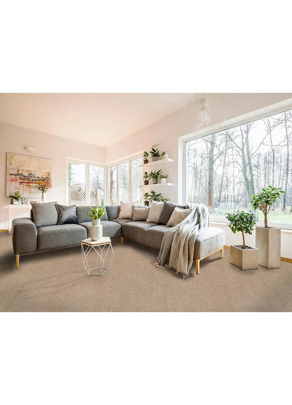 Alfombra a medida Shiva Liso Beige en el salón | Atticgo