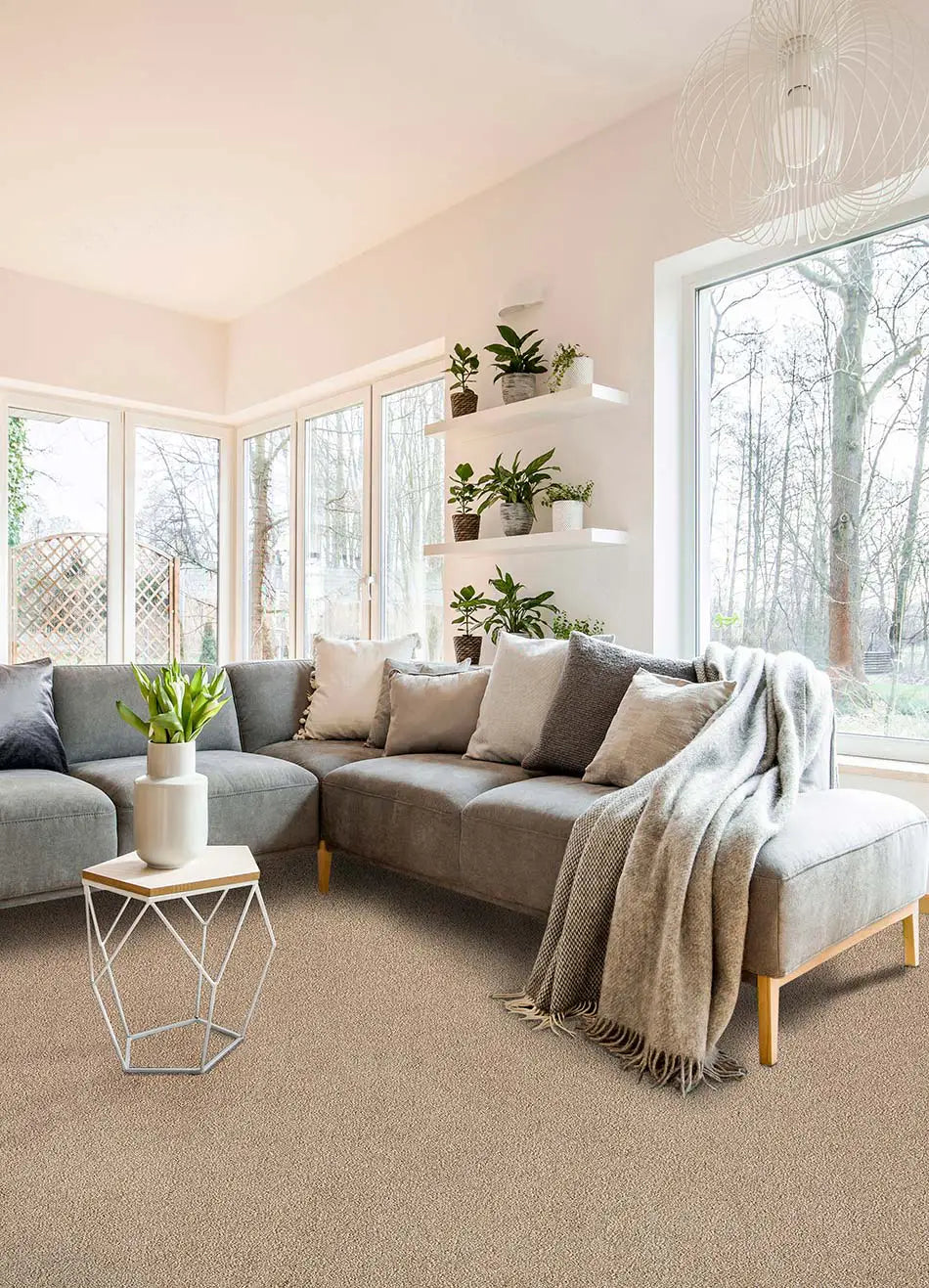 Alfombra a medida Shiva Liso Beige esquina | Atticgo