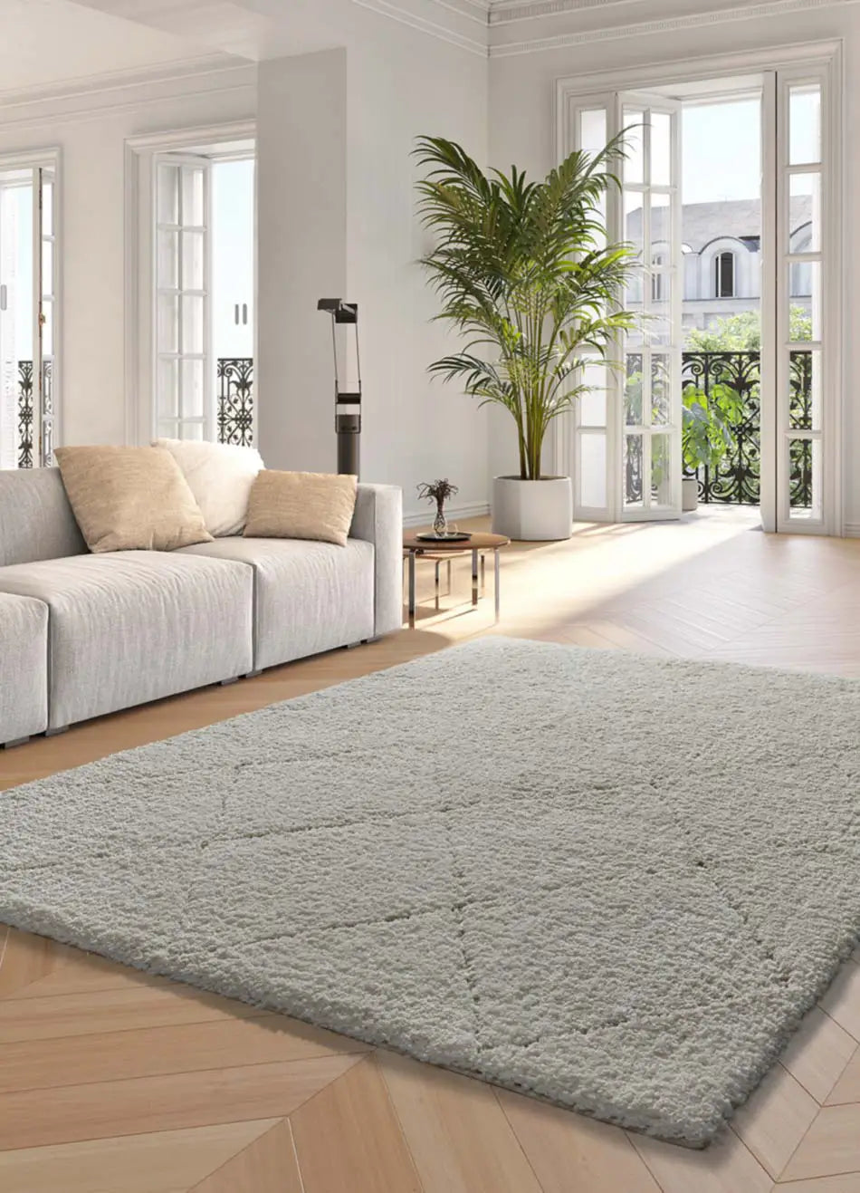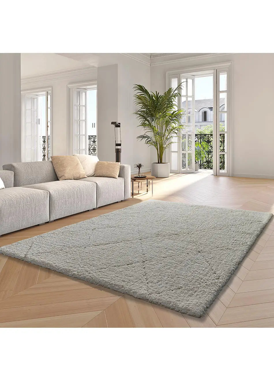 Atticgo Alfombra shaggy estilo escandinavo Atesa 80260 Blanco ambiente salón