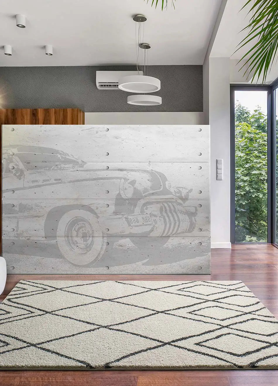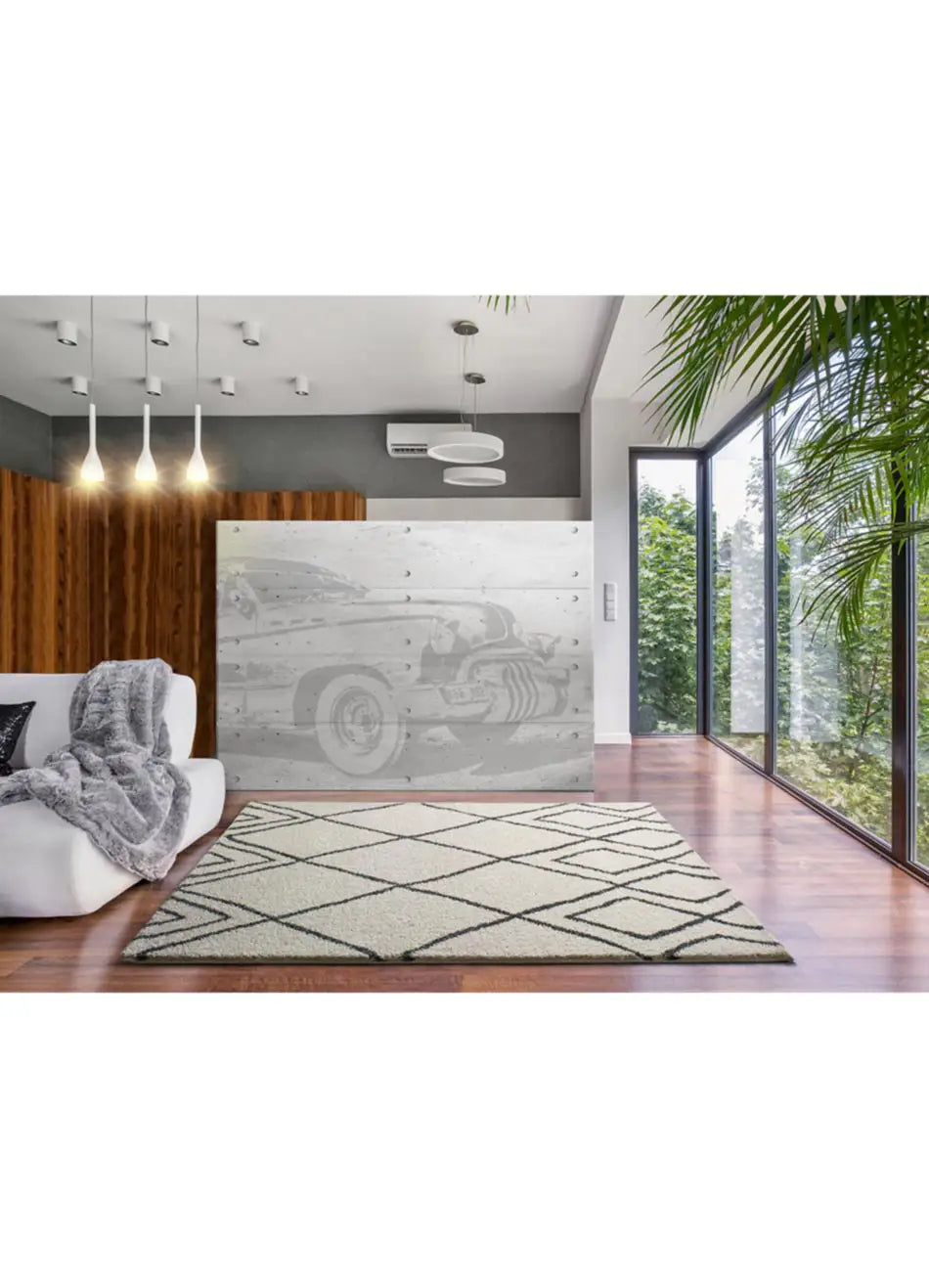 Atticgo Alfombra bereber shaggy rombos Atlas 8637 Blanco Ambiente salón