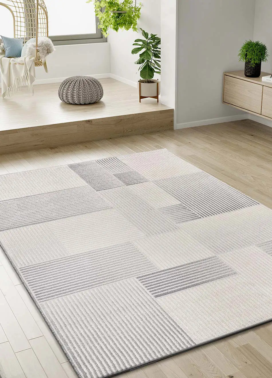 Atticgo Alfombra geométrica con relieve Baresa 12943 Gris ambiente