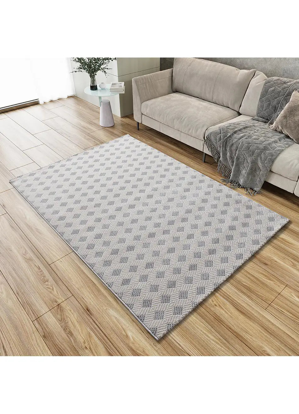 Atticgo Alfombra geométrica con relieve Baresa 12951 Plata ambiente salón