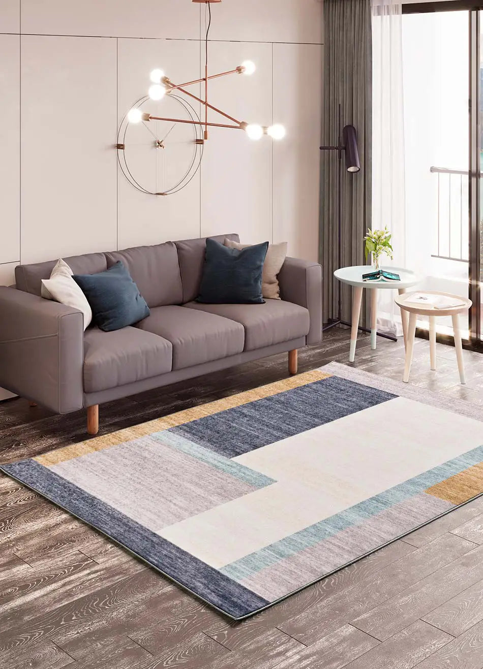 Renueva tu espacio con nuestra alfombra CLASS geométrica impresa en tonos de azul, naranja y crema. Fabricada con poliéster de alta calidad y respaldo de fieltro para una durabilidad excepcional. Los diseños geométricos con dibujos cuadrados y rectangulares añaden un toque moderno y único a cualquier habitación. Descubre cómo esta alfombra geométrica puede realzar la estética de tu hogar con estilo y confort!
