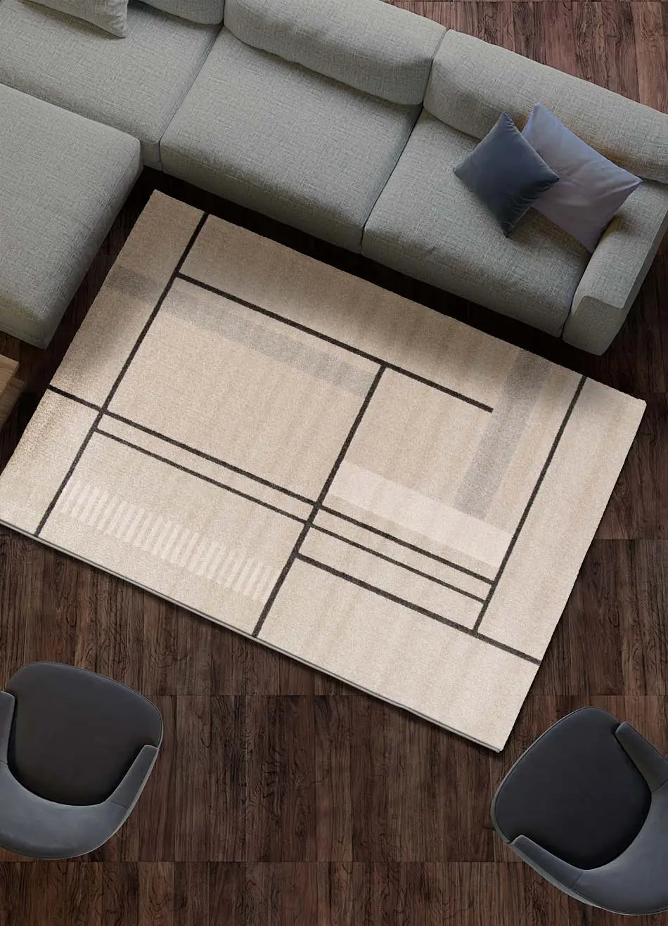 Atticgo Alfombra Diseños Geométricos DOMUS 32302 Beige ambiente salón