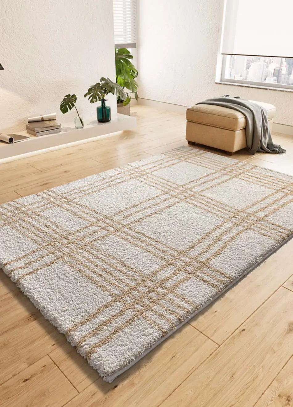 Atticgo Alfombra shaggy Helia 8808 Beige ambiente