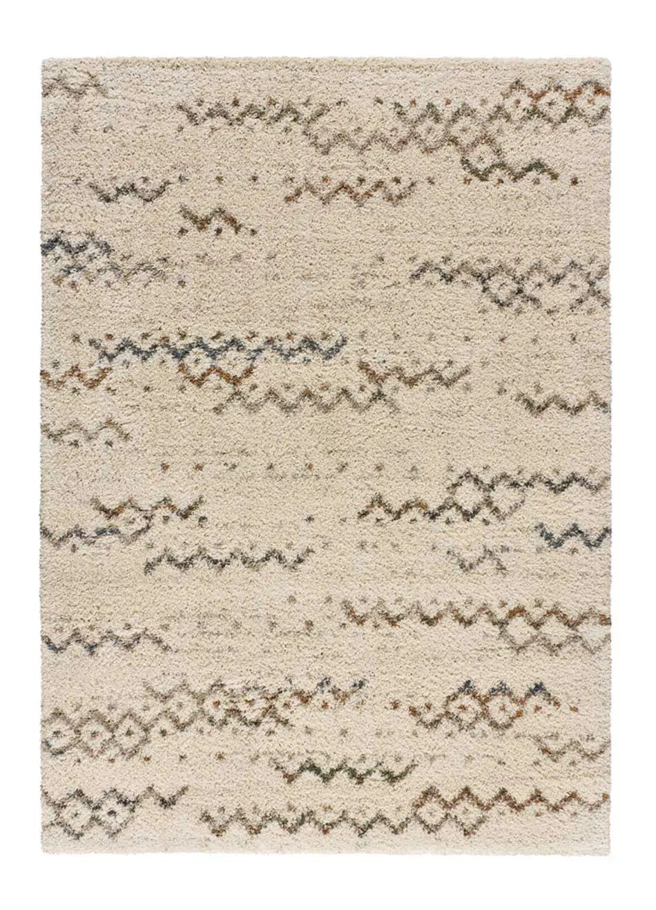 • Alfombra de pelo largo en colores crema y mostaza, con un diseño geométrico que encajará con cualquier decoración. Alfombra moderna perfecta para salón o dormitorio.