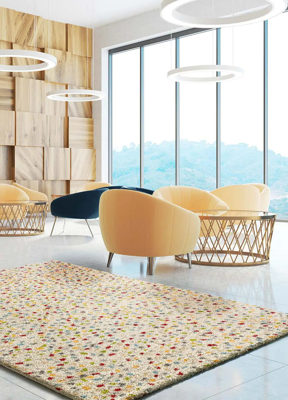 Alfombra shaggy multicolor Kasbh 8598 en salón | Atticgo