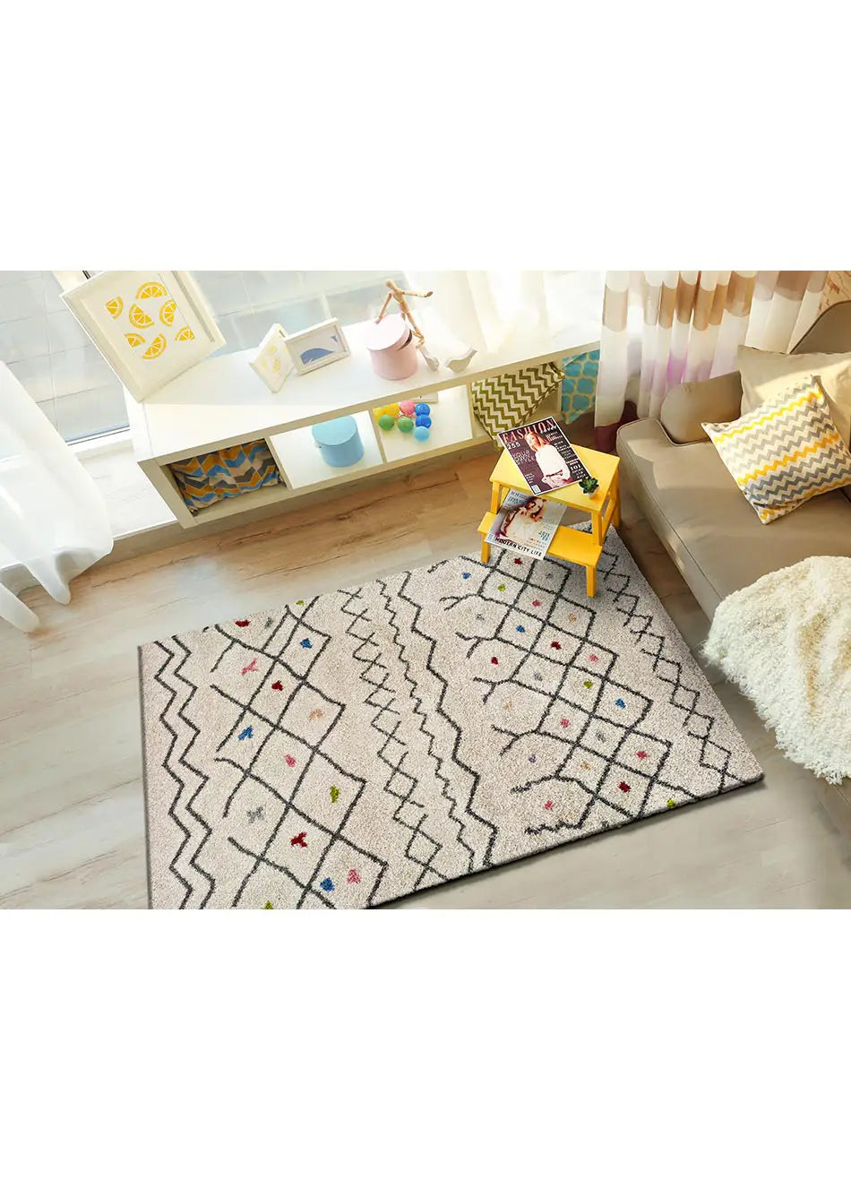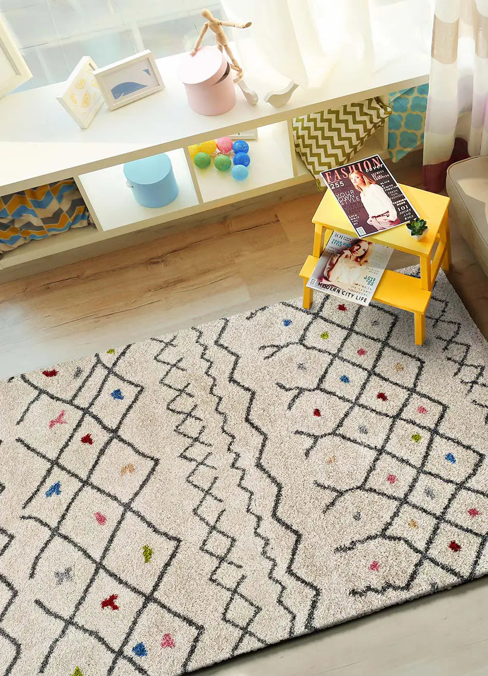 atticgo Alfombra étnica shaggy Kasbah 8612 blanco ambiente