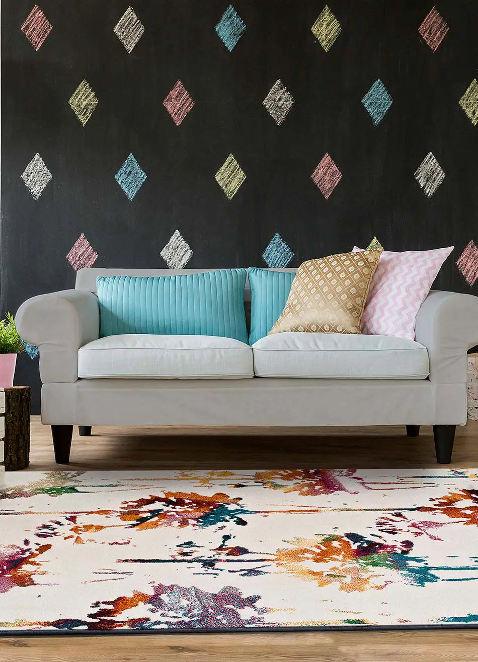 Consigue la luz y el color que le falta a tu casa con la alfombra abstracta Katrina multicolor. Esta alfombra de salón o dormitorio creará una decoración moderna y actualizada gracias su diseño que combina colores como el azul, verde, naranja y rosa.