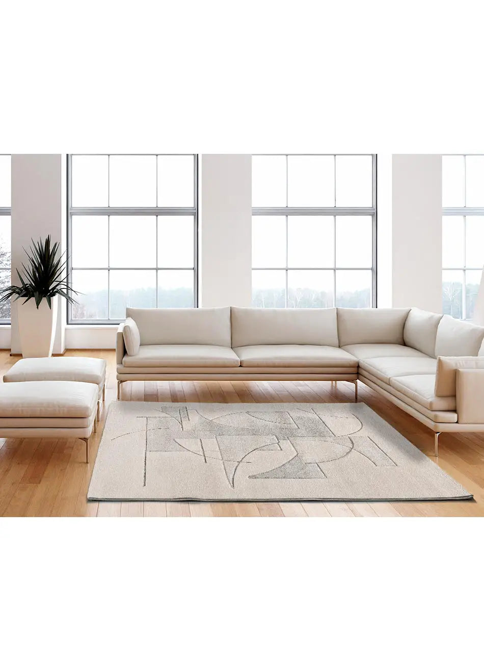 Atticgo Alfombra geométrica a trazos Lena 40313 Crema esquina