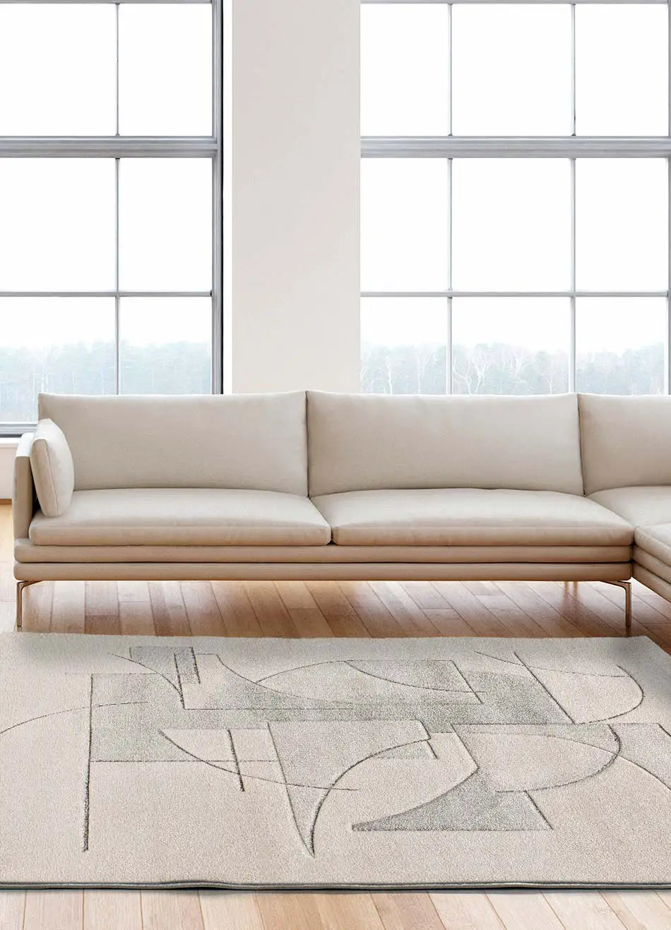 Atticgo Alfombra geométrica a trazos Lena 40313 Crema ambiente