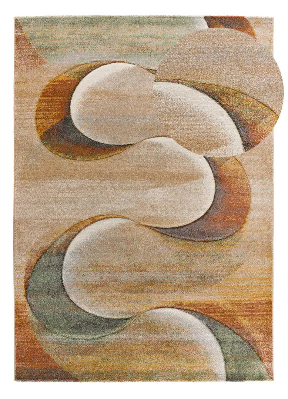 La alfombra abstracta LIBET en tonos multicolor creará un dinamismo único en tu casa. Las formas ovaladas y redondas cobran importancia en esta alfombra de salón con una vibrante paleta de colores verdes, naranjas y beige. ¡Dale un aire nuevo a tu hogar!