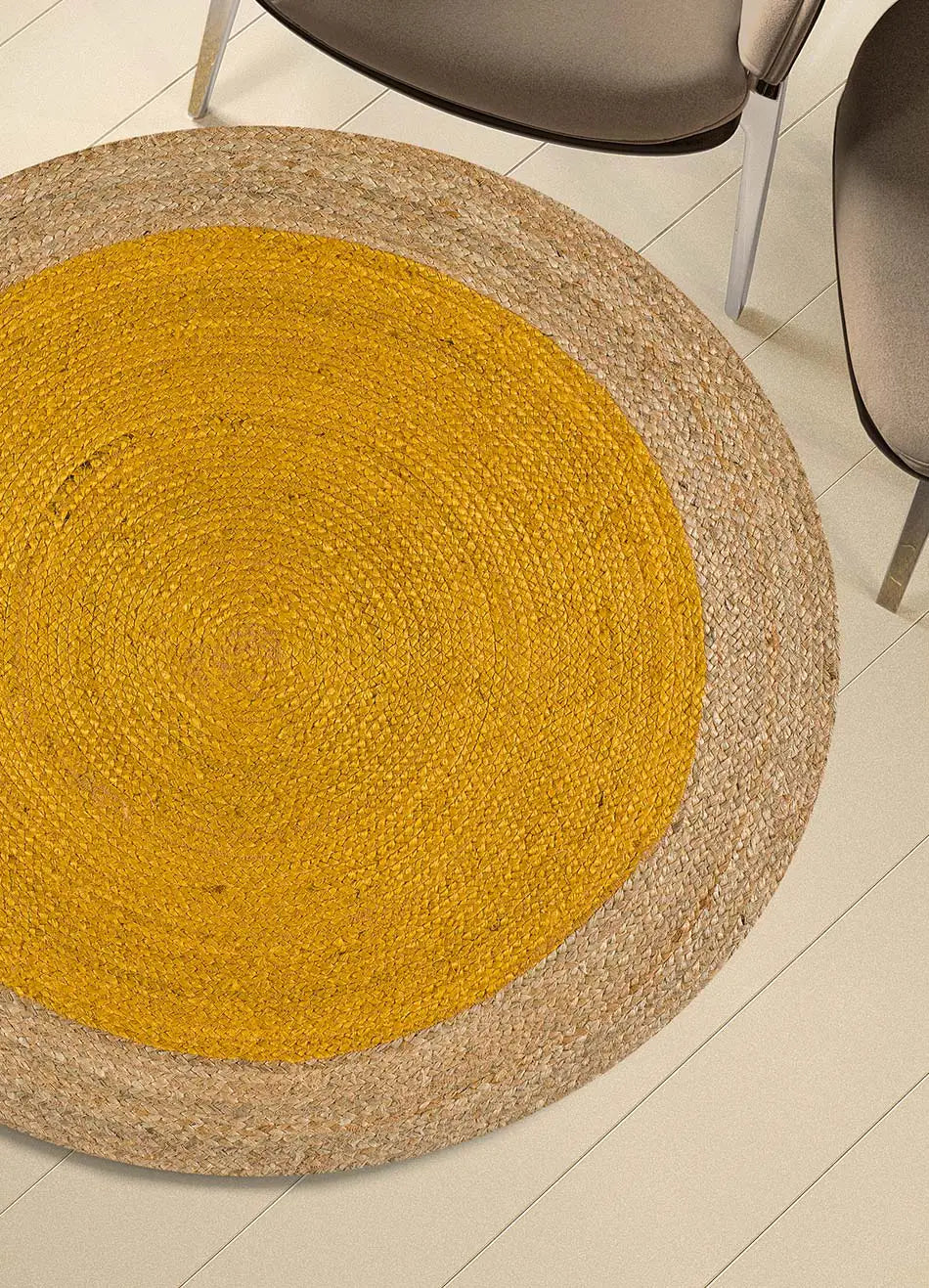 Traslada tu hogar al mediterráneo con la alfombra redonda de yute MAHON. Gracias a su diseño circular y su gama de colores esta alfombra de yute puede integrarse a la perfección en cualquier estancia de la casa, en un recibidor, por ejemplo.