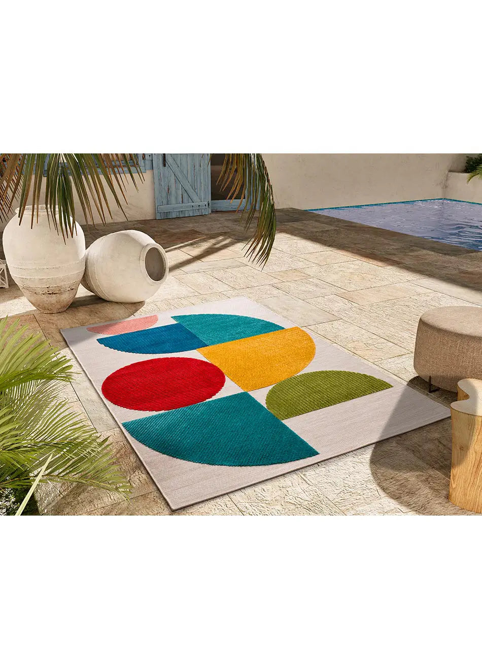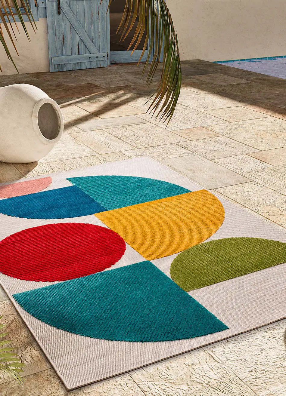 MILA es una colección de alfombras de exterior-interior llena de color. Diseños geométricos con relieve que le aportarán a tu casa un extra de diseño y confort
