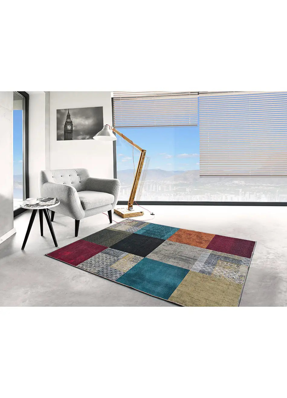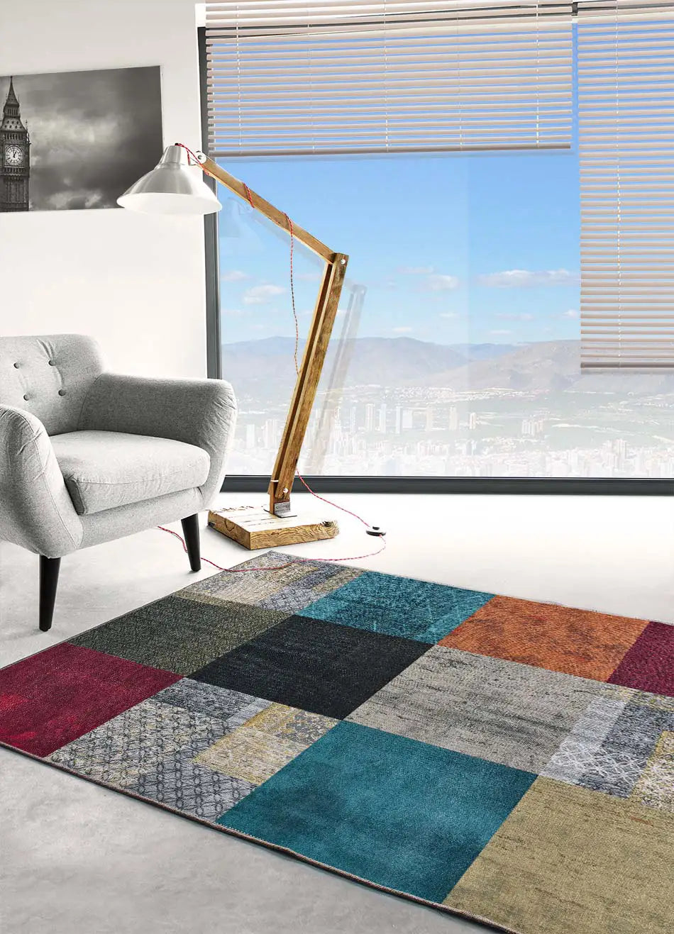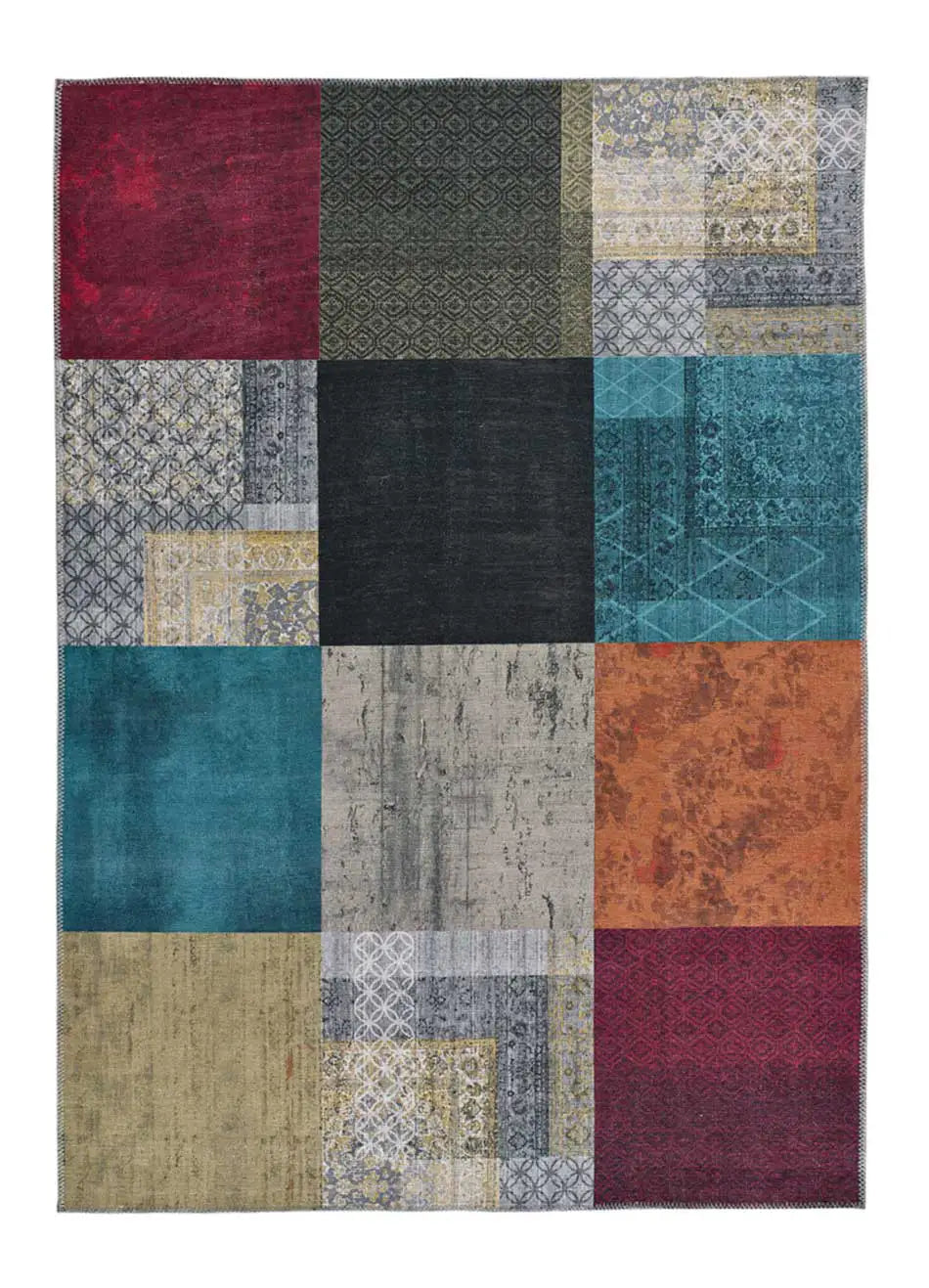 • Alfombra vintage con diseño patchwork multicolor, perfecta para salón o dormitorio. Además es una alfombra plegable, podrás doblarla, guardarla o transportarla fácilmente.