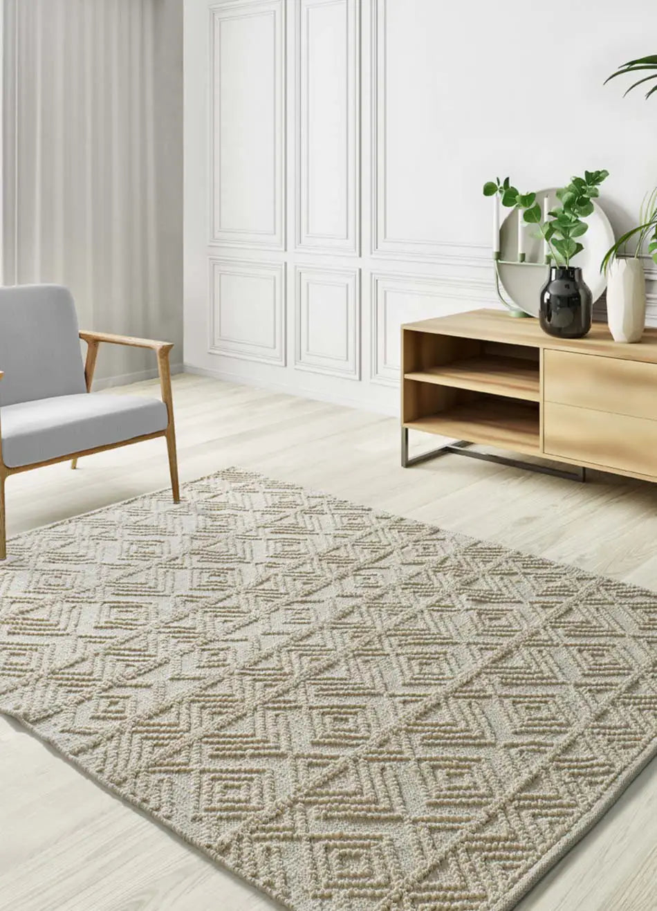 Atticgo Alfombra estilo escandinavo, reciclada y con relieve Lima 3502 Beige ambietne