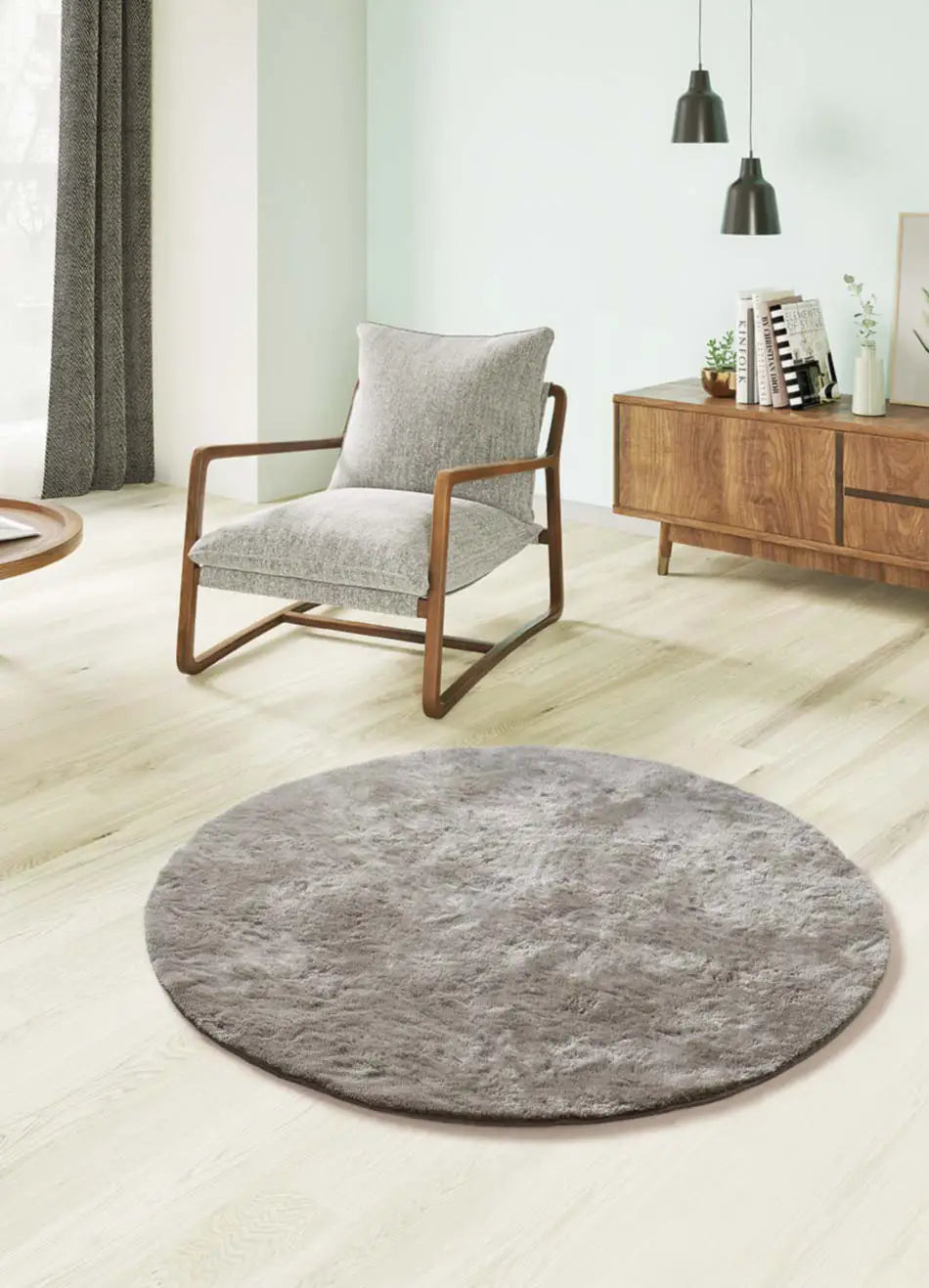 Alfombra redonda shaggy antideslizante Roma Liso Piedra