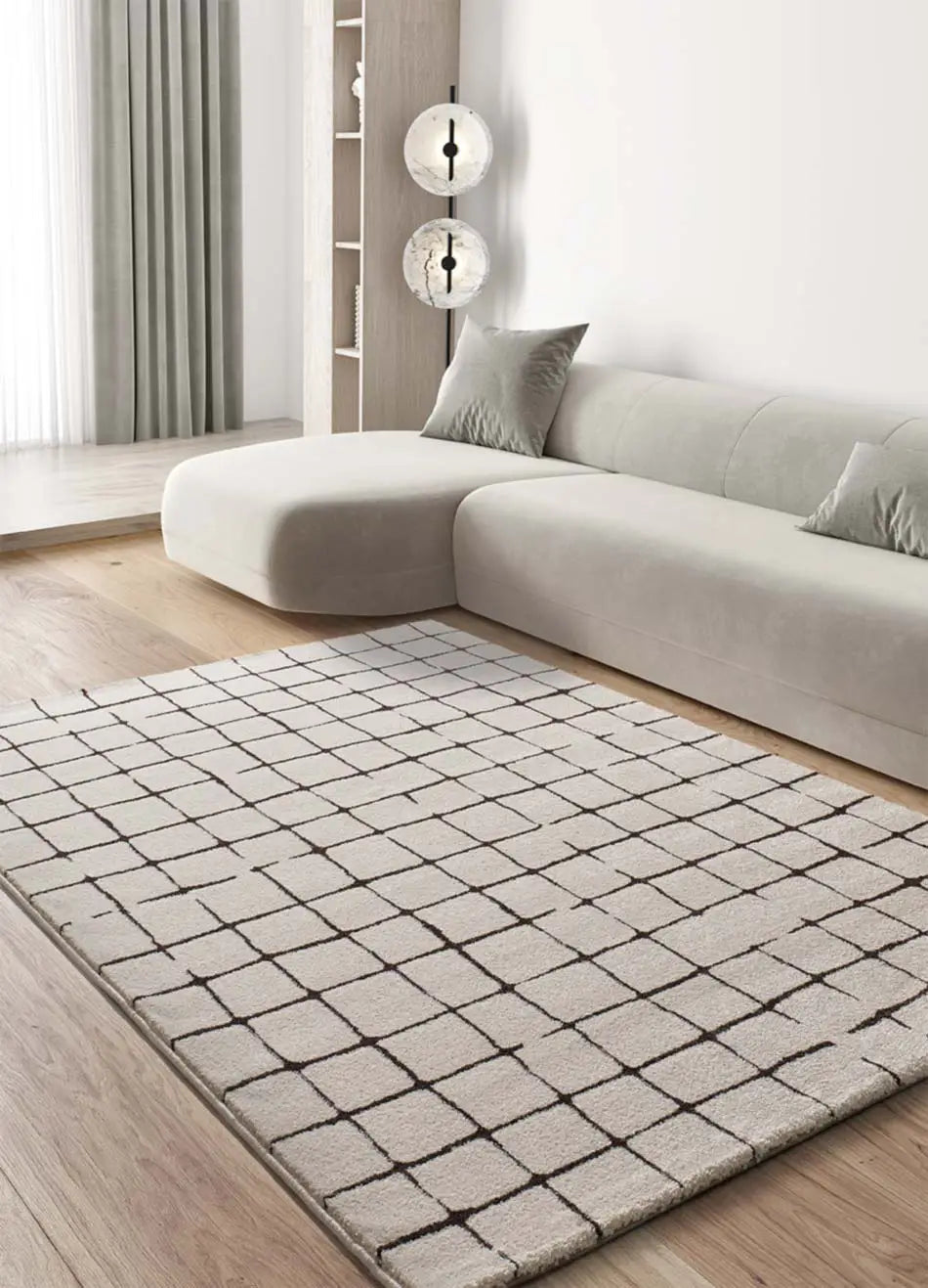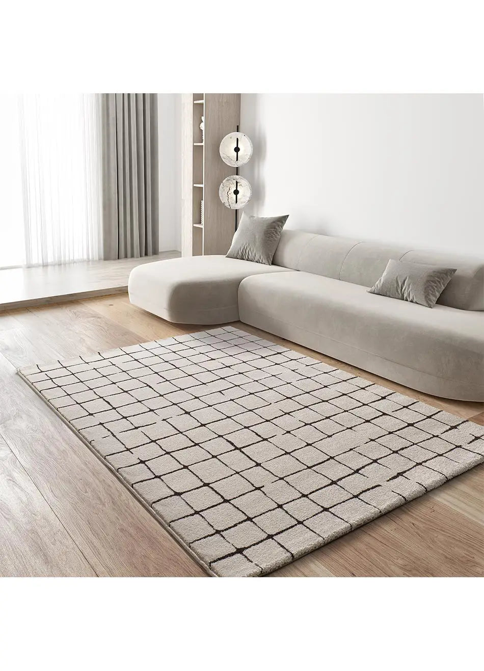 Descubre Retro, la alfombra que podrás combinar sin problemas en cualquier espacio. Esta alfombra ha sido confeccionada únicamente por dos colores: blanco y negro. Y sus formas geométricas de estilo escandinavo la hacen ideal para la decoración de tu salón o dormitorio.