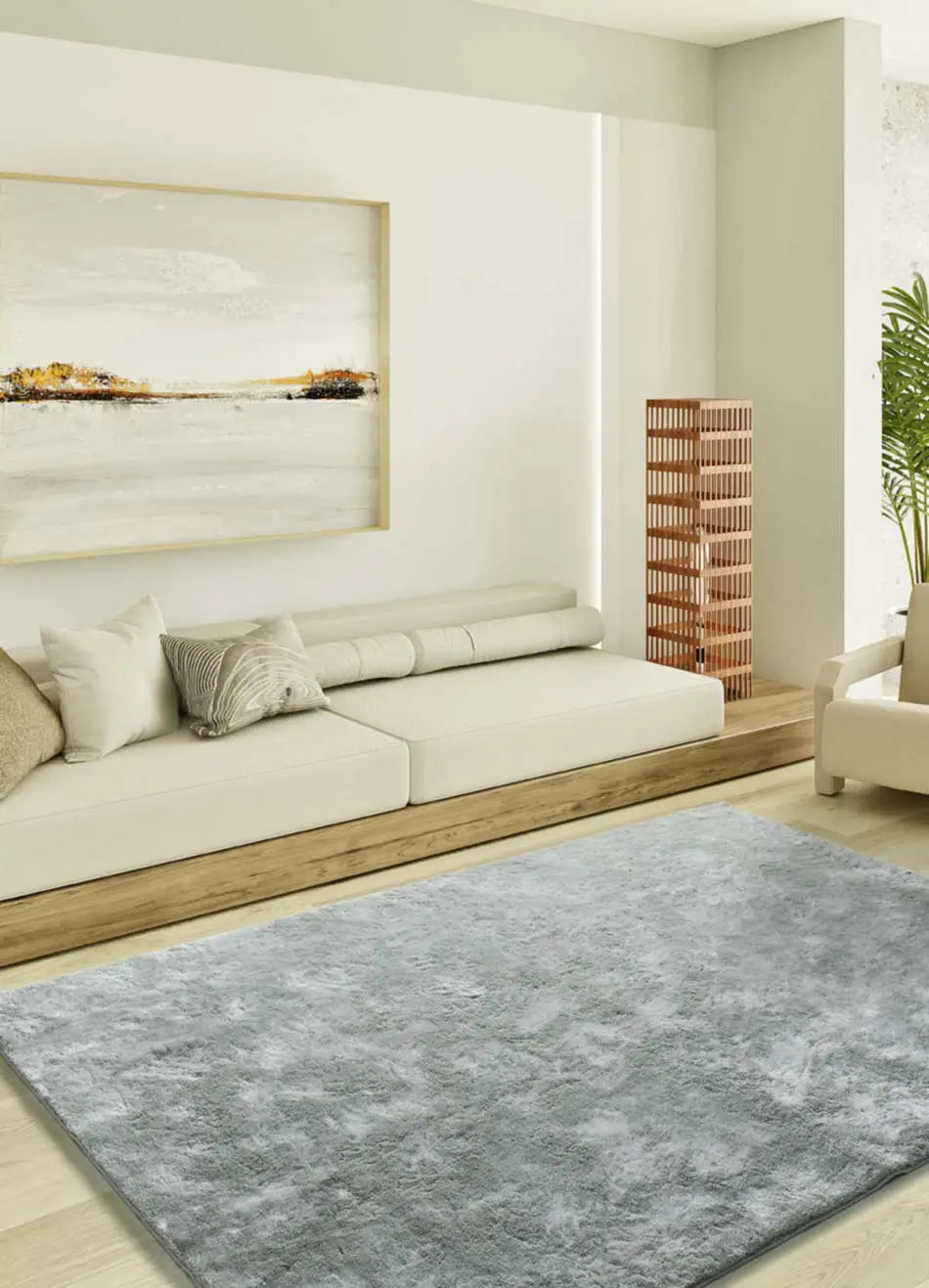 Atticgo Alfombra shaggy antideslizante Roma Liso Plata ambiente