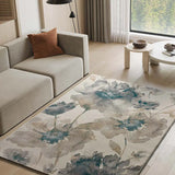 - La alfombra Sara es una alfombra que se inspira en la naturaleza. Una alfombra de pelo corto en tonos crema, grises y azules. Su diseño la convierte en una alfombra moderna y elegante, perfecta como alfombra de salón o dormitorio.