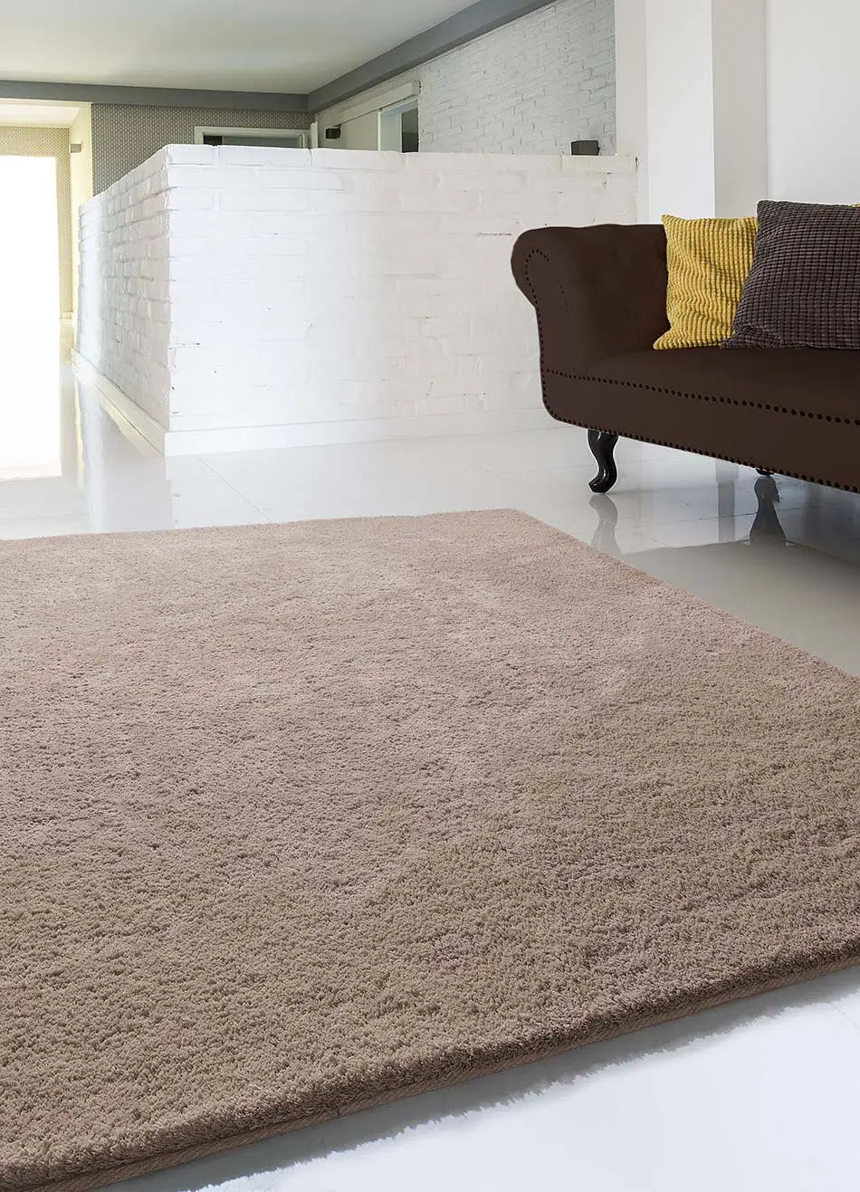 Alfombra shaggy Shanghai Liso Marrón Ambiente Salón Atticgo