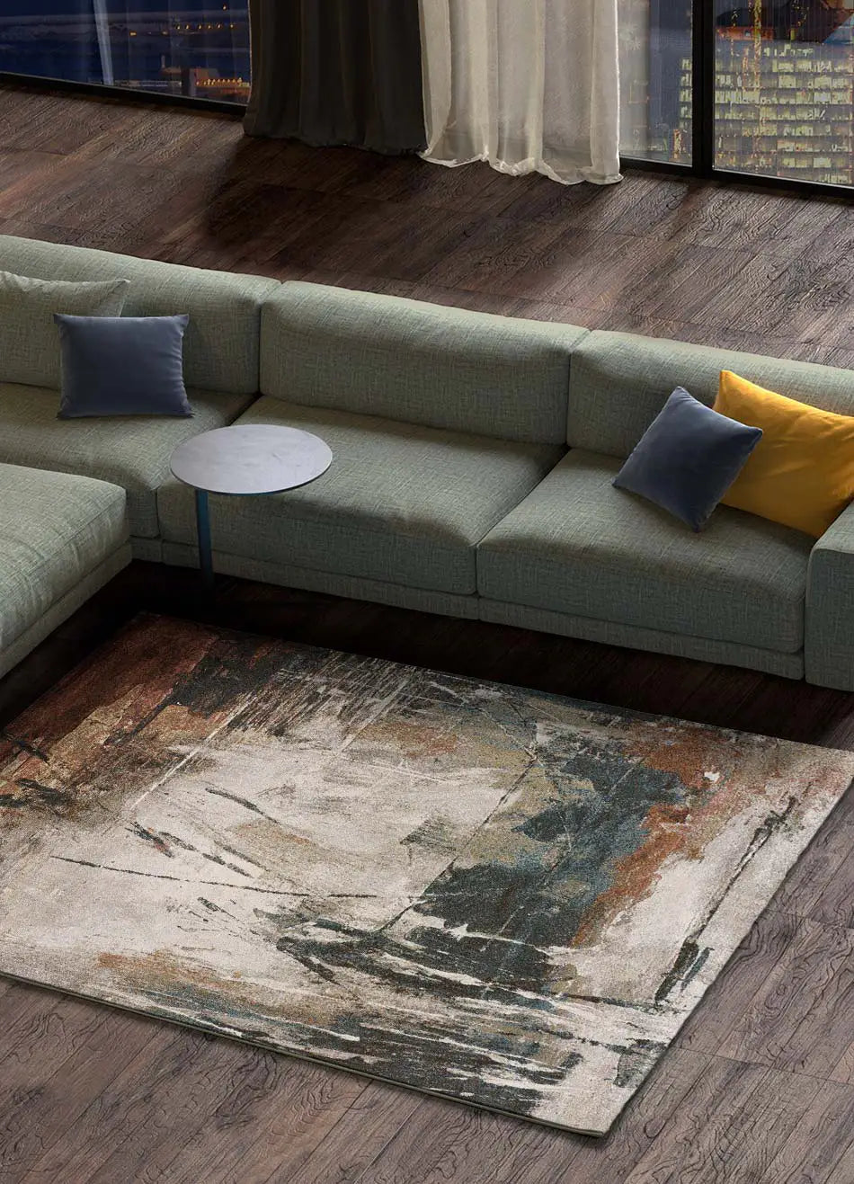 Nos encantan el diseño y la gama de colores de la alfombra VICTORIA. Una alfombra moderna con diseño abstracto, una obra de arte bajo tus pies.