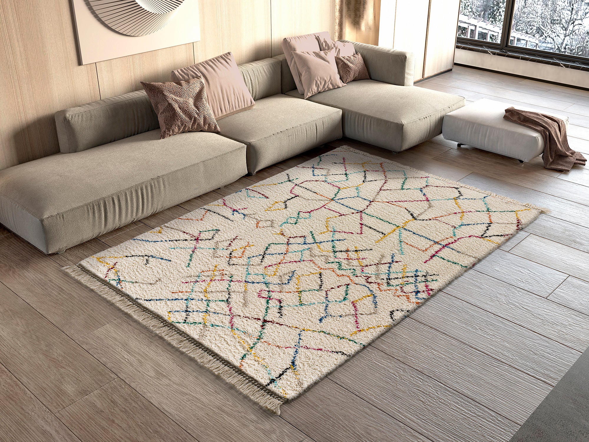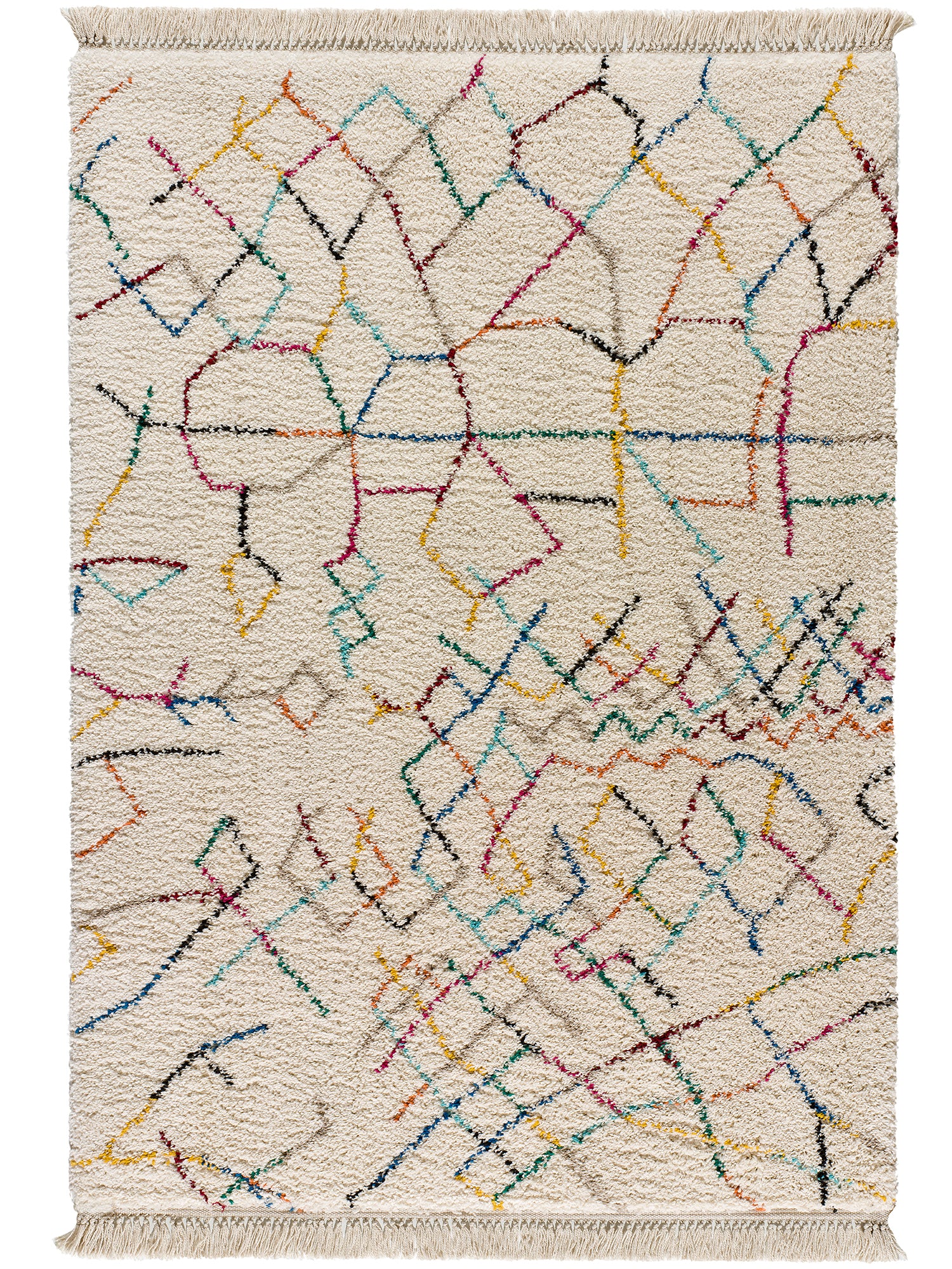 Alfombra de pelo largo con flecos Yebel 807 Blanco
