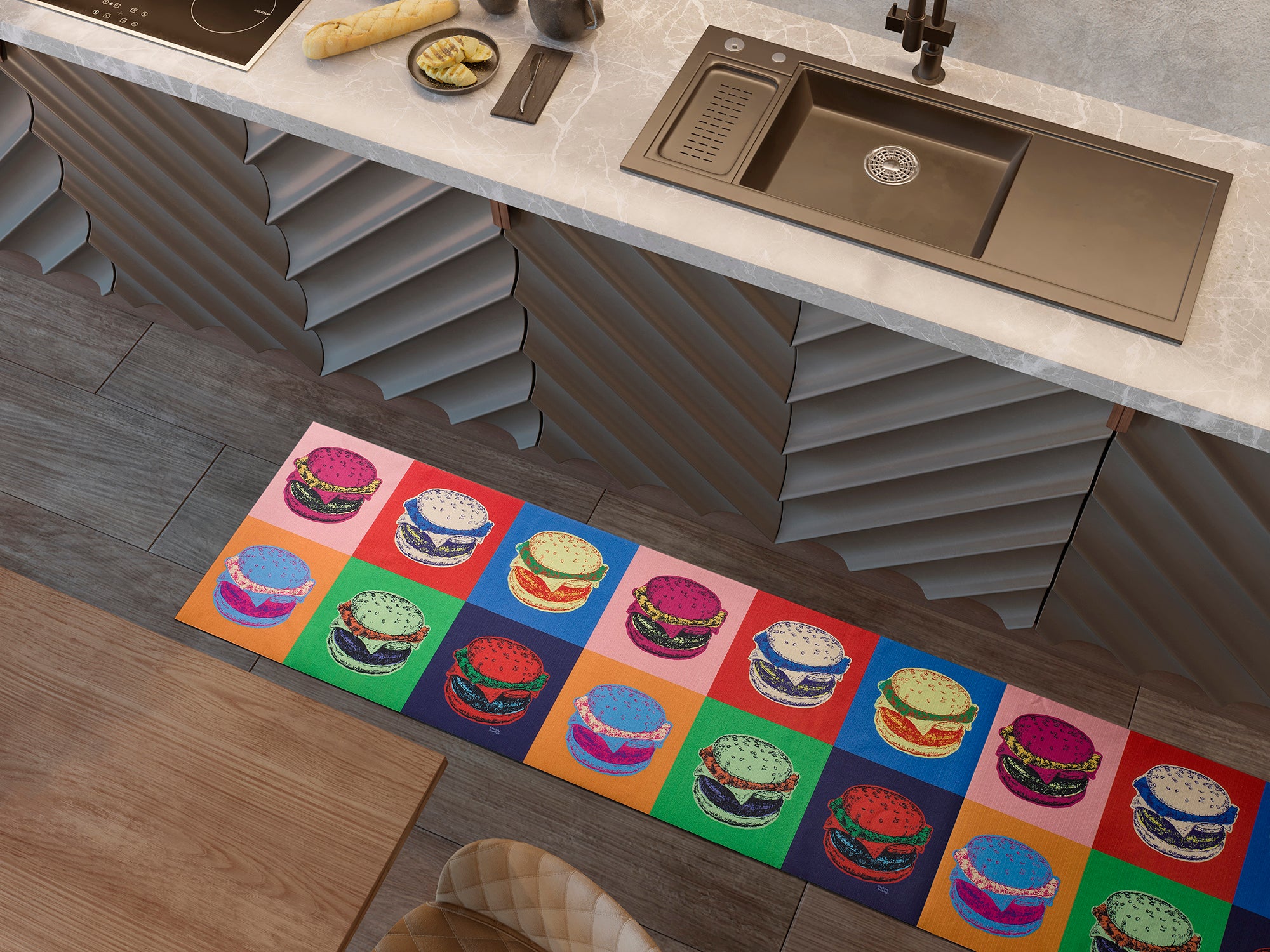 Dale un toque divertido y creativo a tu cocina con la alfombra de cocina Ricci Pop Art, hecha en Italia. Esta alfombra de fácil limpieza es una pieza de decoración que transforma tu cocina en un espacio lleno de color y vida. Podrás quitar las manchas fácilmente con un paño húmedo o incluso en la lavadora.